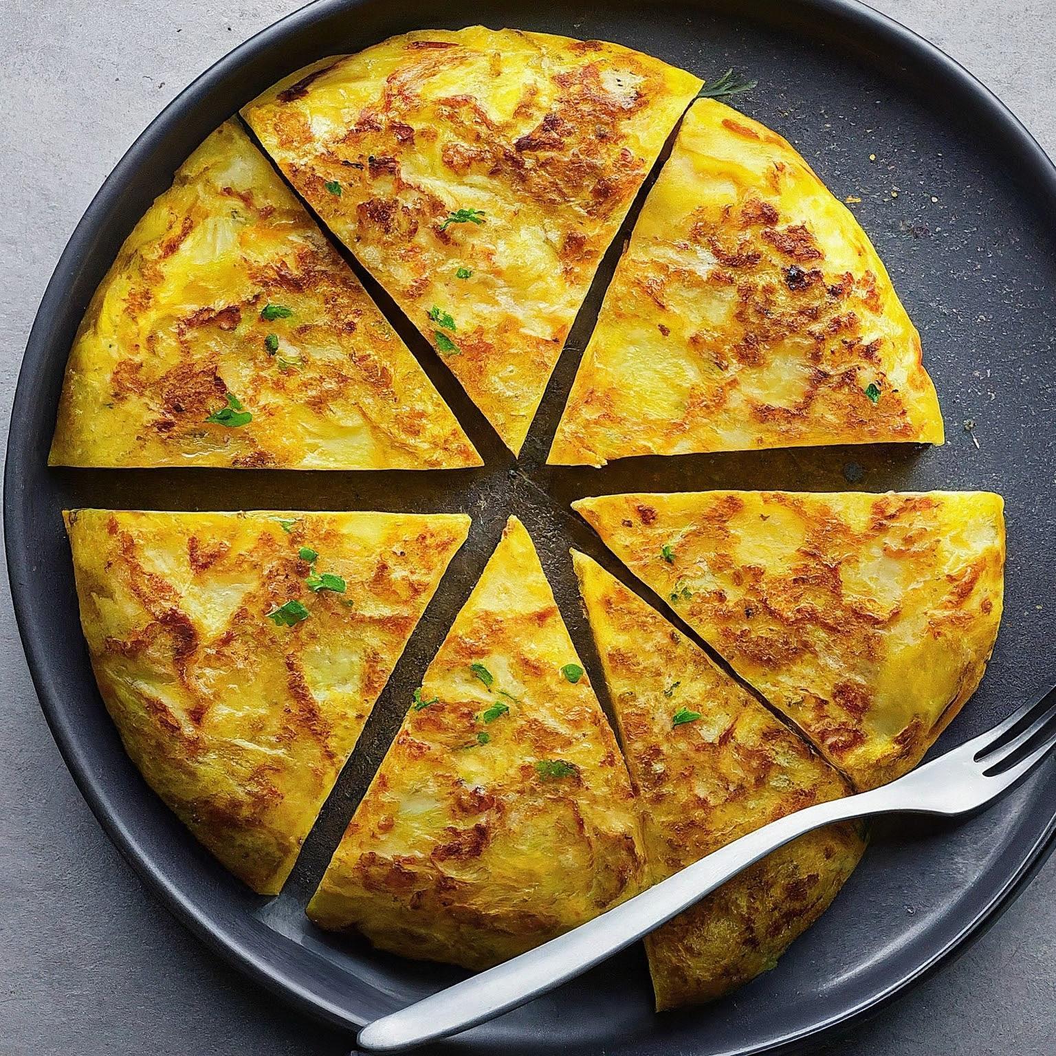 | 6. | Die Tortilla aus der Pfanne nehmen und auf einem Teller etwas abkühlen lassen. In Stücke schneiden und servieren. |