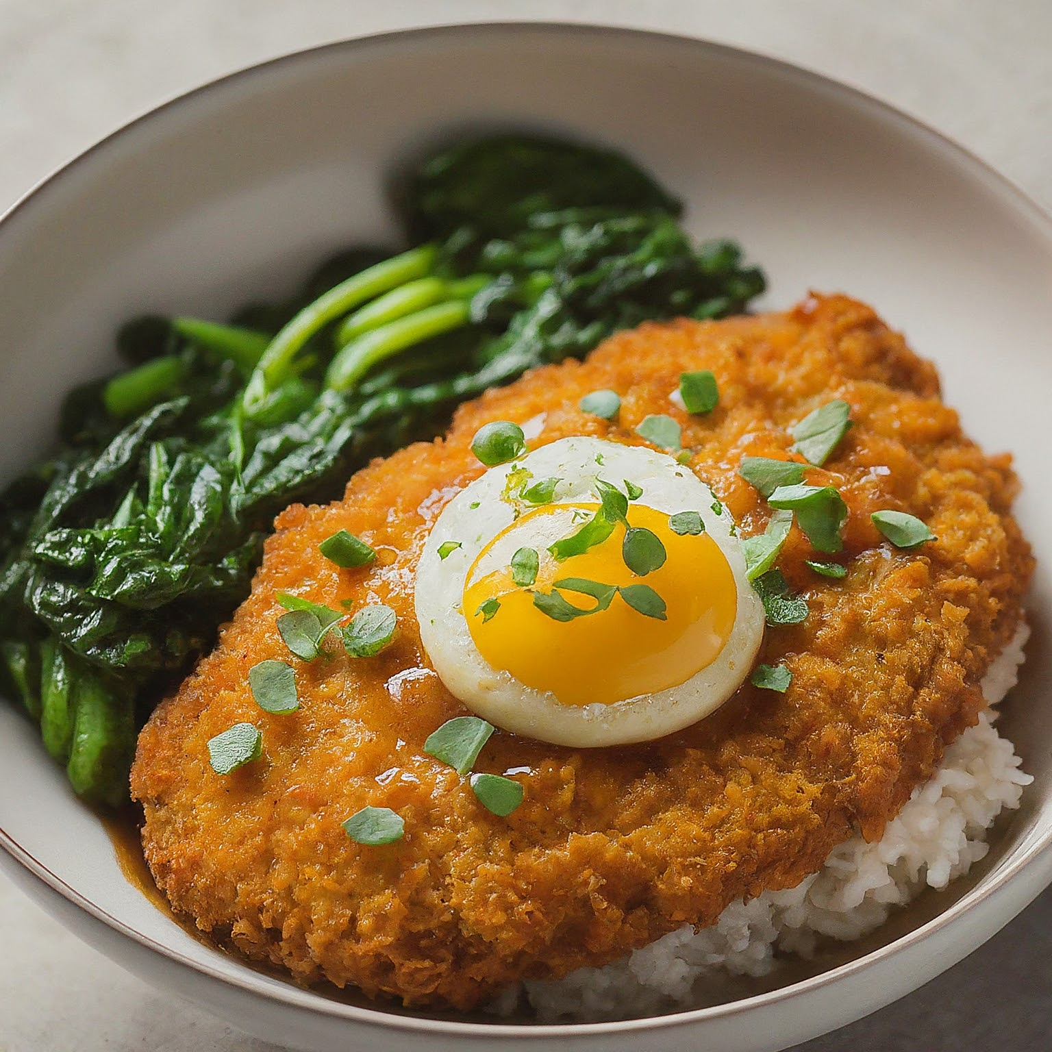 Katsudon, ein japanisches Wohlfühlgericht: Knuspriges Schnitzel in süß-pikanter Sauce, mit Ei und Reis.