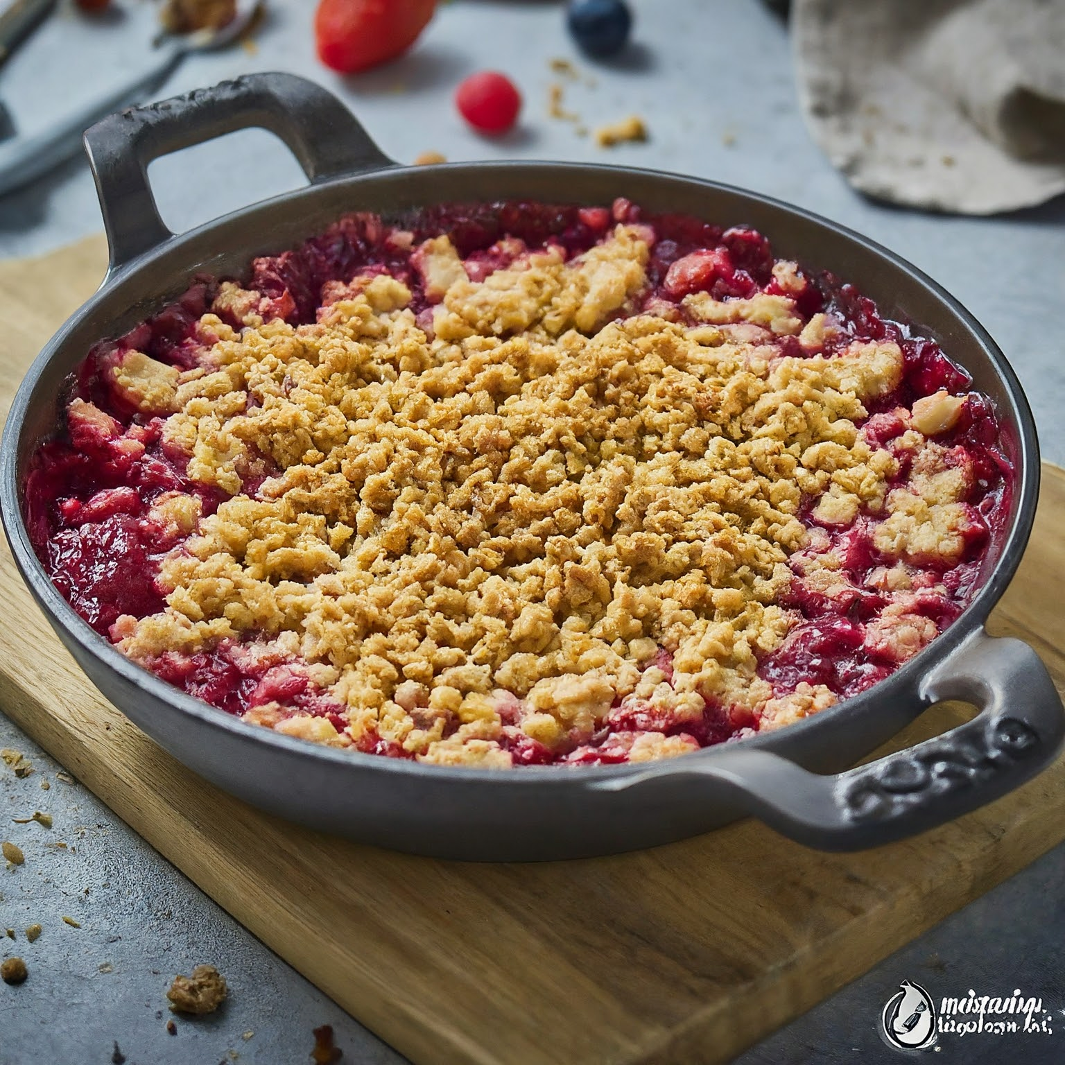 | 6. | Im vorgeheizten Backofen bei 180°C (Ober-/Unterhitze) ca. 30 Minuten backen, bis der Crumble goldbraun ist. |
