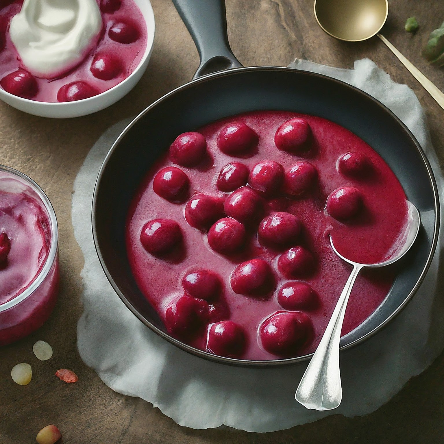 Omas Kirschpfanne ist ein echter Klassiker! Die saftigen Kirschen werden mit einer knusprigen Streuselhaube im Ofen gebacken und schmecken sowohl warm als auch kalt. Perfekt für den Sommer oder als gemütlicher Herbst-Dessert.