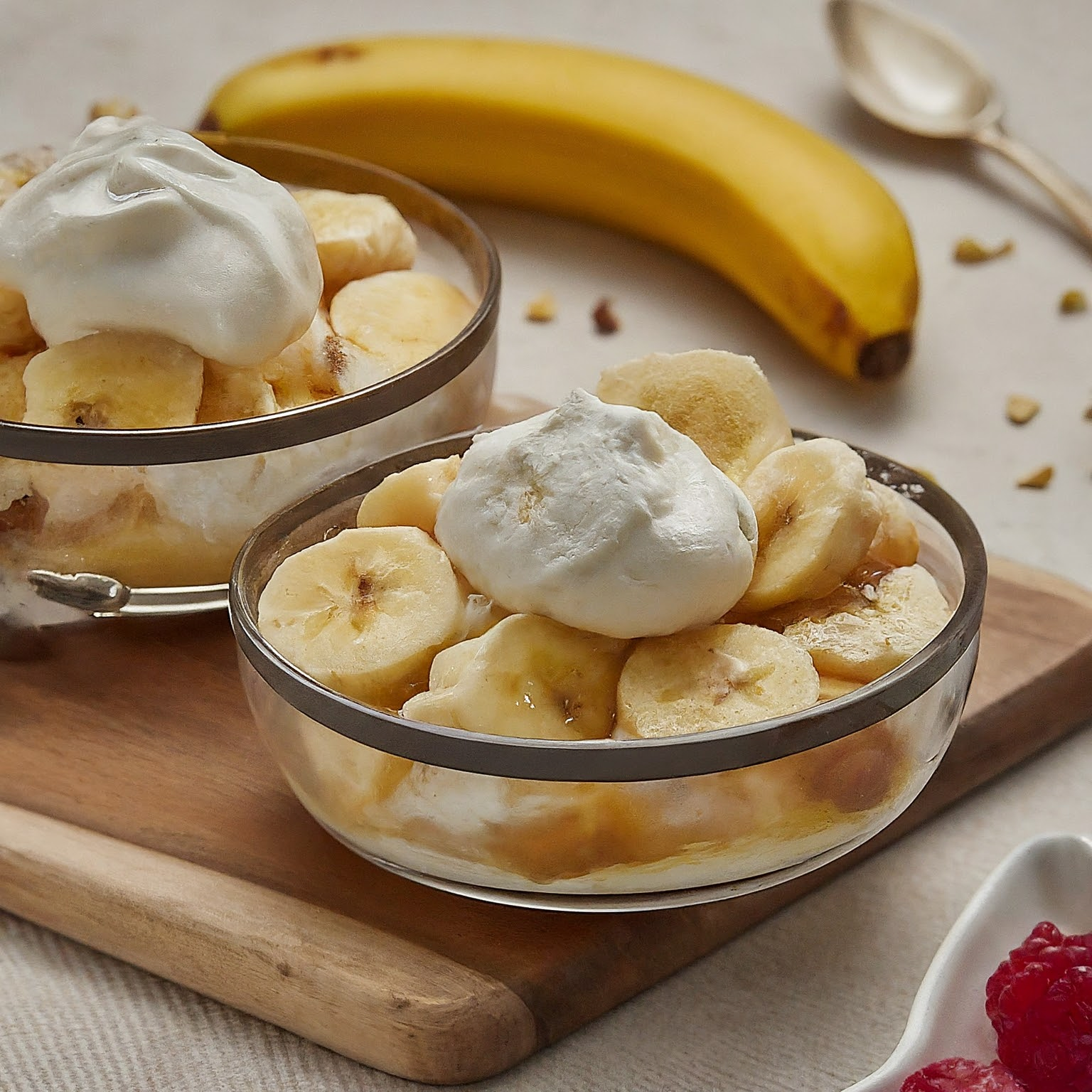Ein erfrischender Klassiker: Der Bananensplit! Cremiges Eis trifft auf saftige Banane und süße Toppings – ein Genuss für Groß und Klein.