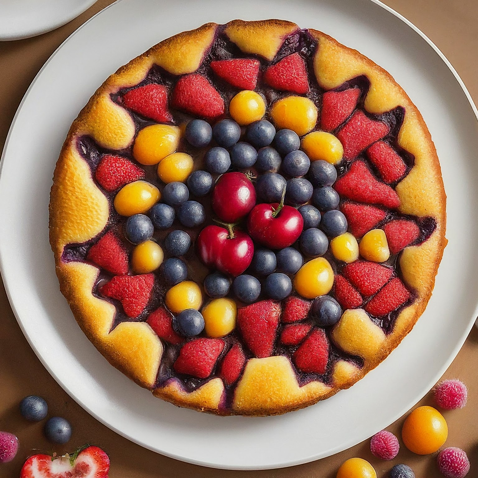 Ein einfacher und leckerer Obstkuchen mit saftigen Früchten der Saison. Perfekt für Kaffee und Kuchen oder ein sommerliches Picknick.