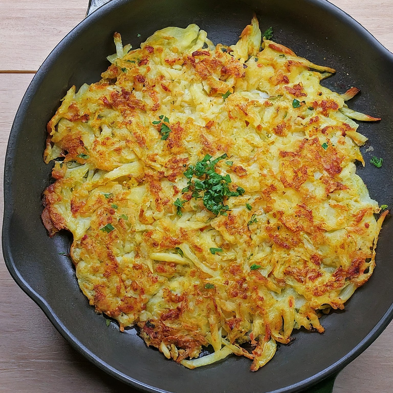 6. | Rösti wenden und weitere 10 Minuten braten, bis sie knusprig und goldbraun ist. |