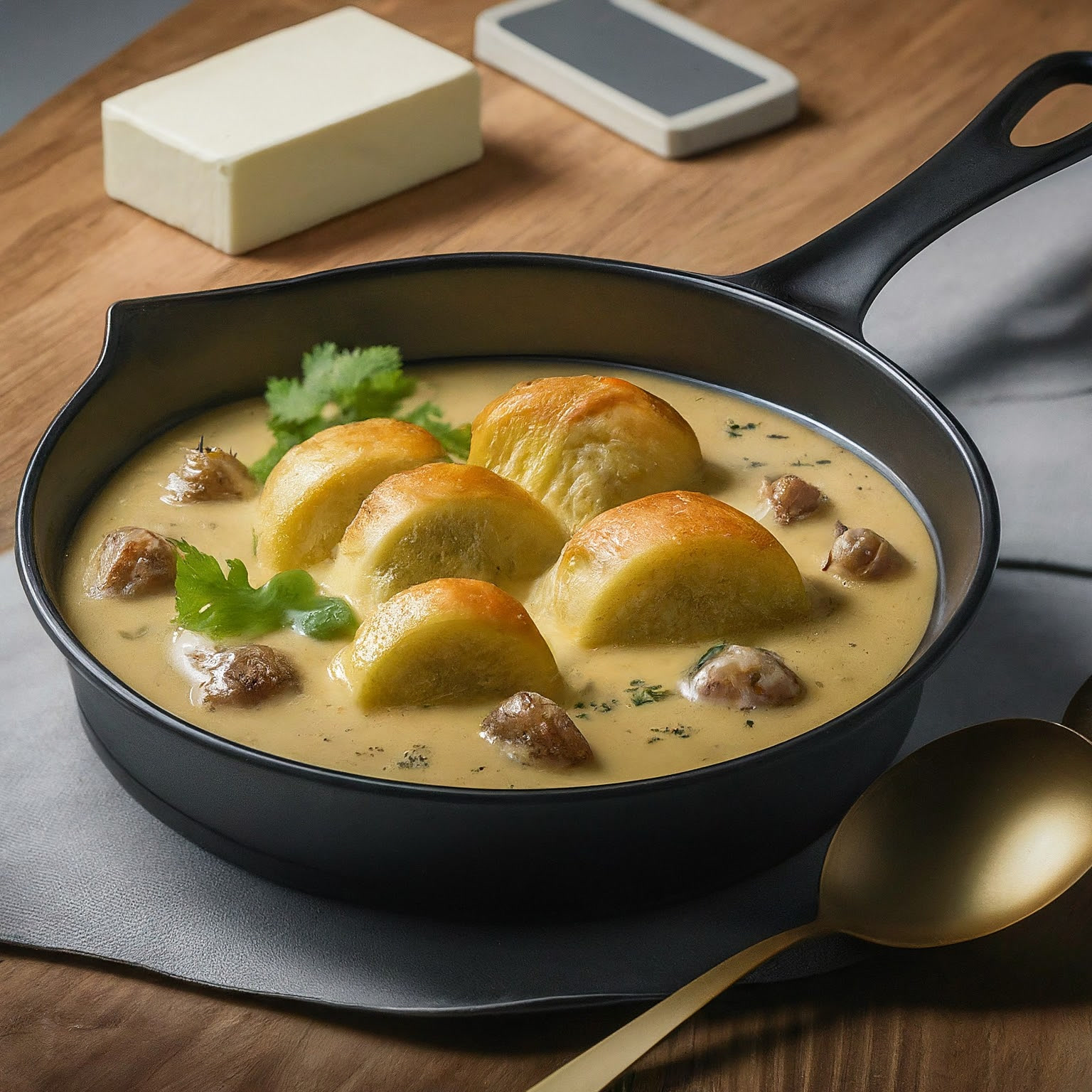 | 2. | Sobald der Zucker goldbraun karamellisiert ist, die Butter und das Salz hinzufügen. Vorsicht, es kann spritzen! |