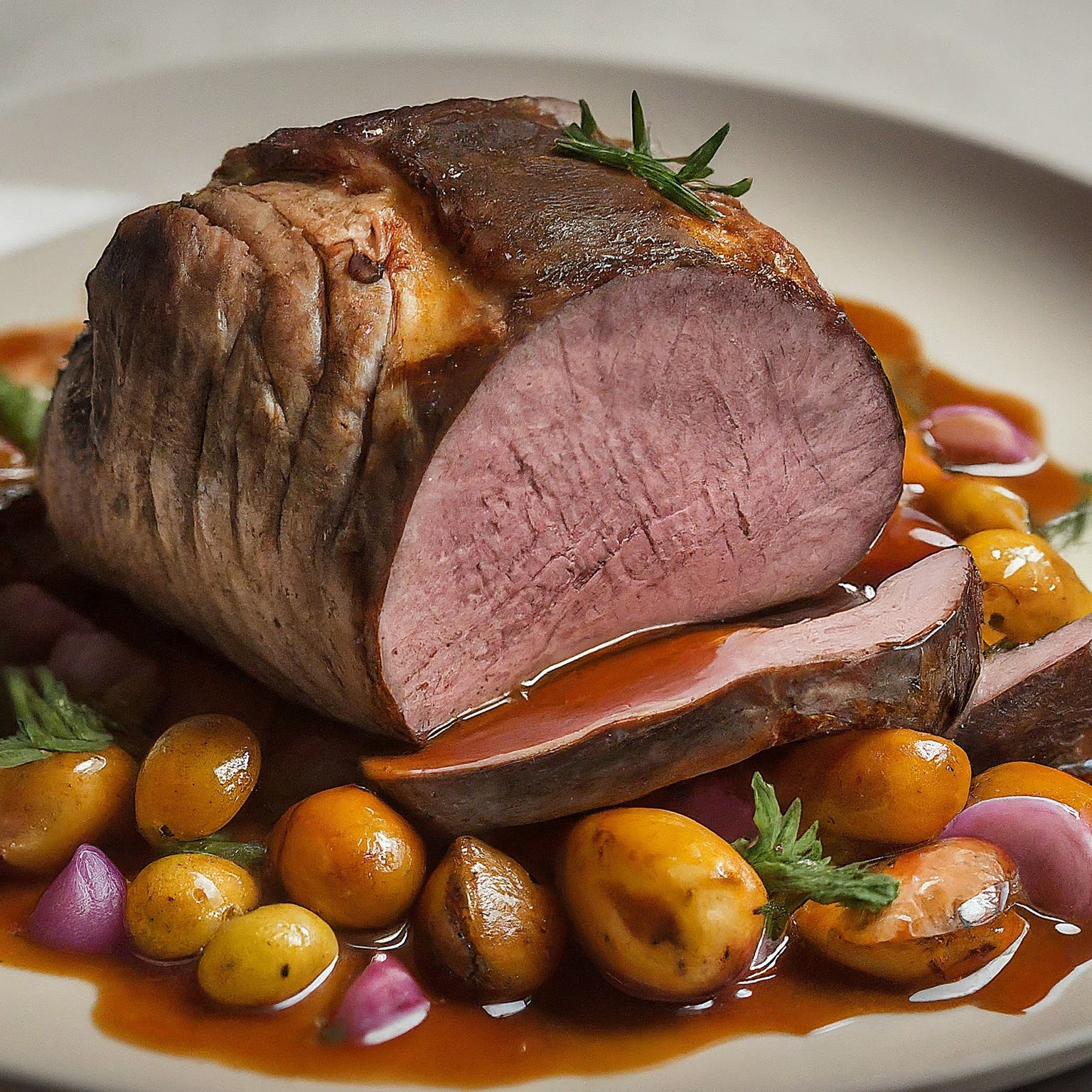 11.Braten aus dem Ofen nehmen und 10 Minuten ruhen lassen, bevor er aufgeschnitten wird.