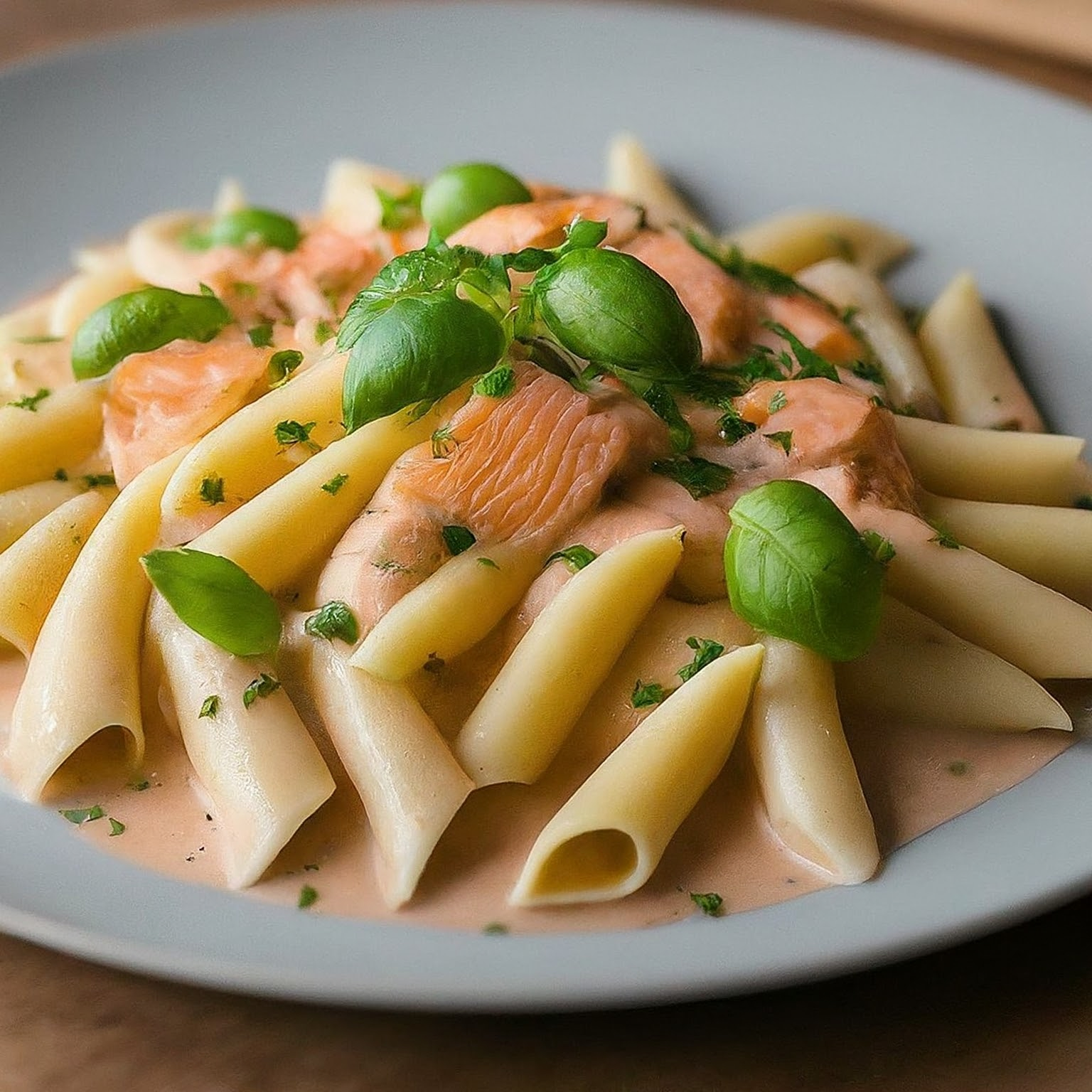 Schnelles und einfaches Rezept für cremige Lachs Pasta. Zarter Lachs in einer cremigen Sauce mit perfekt gekochten Nudeln.
