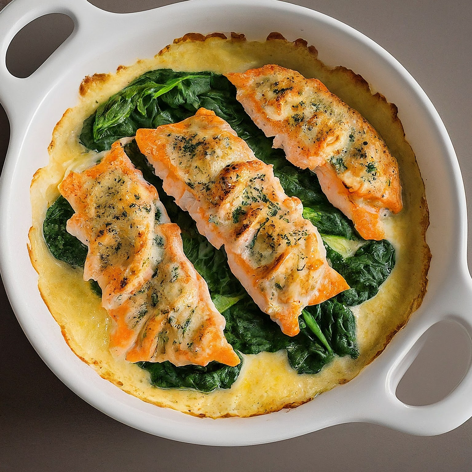 Cremiges Lachsgratin mit zartem Spinat und einem Hauch Knoblauch. Ein einfaches und dennoch elegantes Gericht, perfekt für Fischliebhaber.