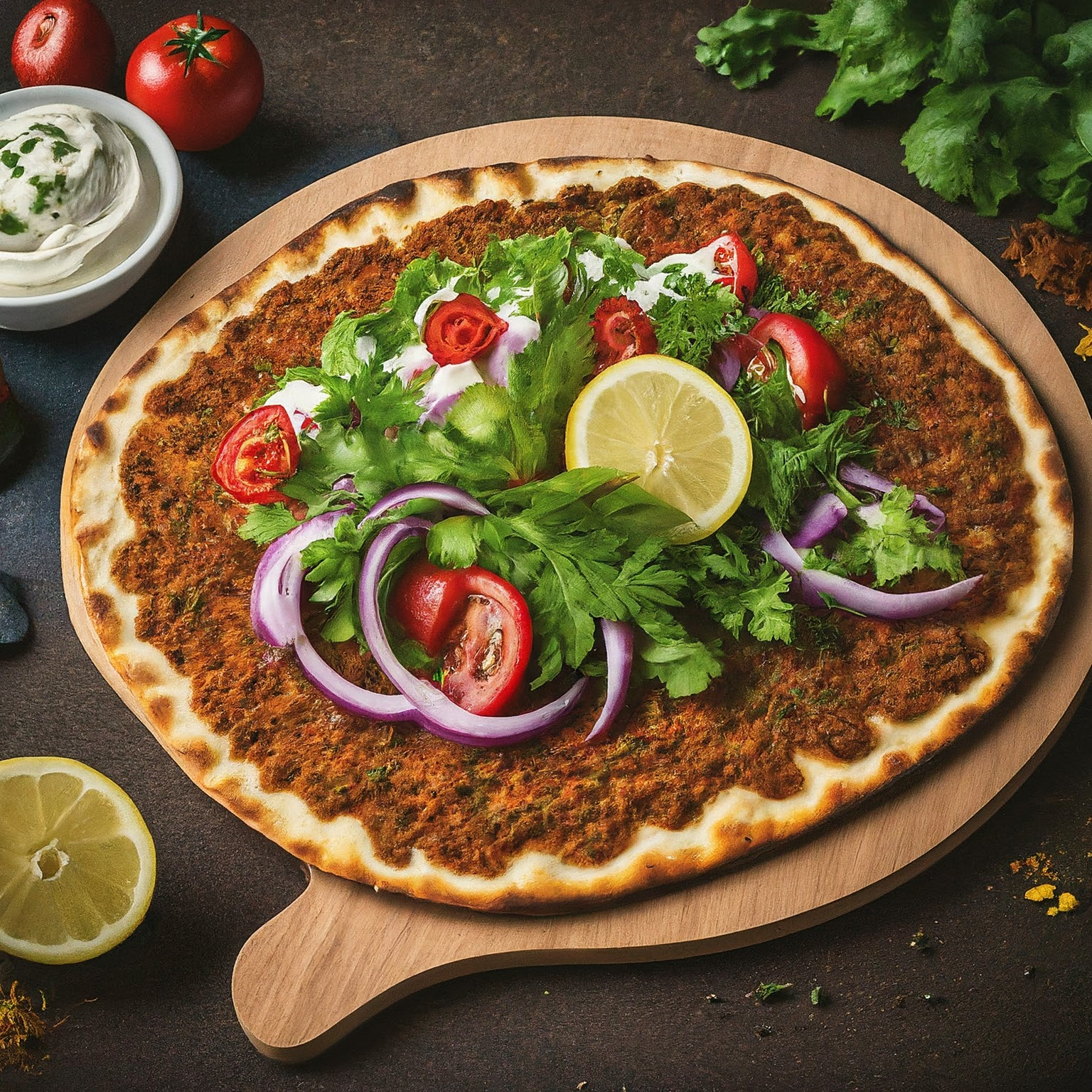 Ein einfaches und authentisches Rezept für Lahmacun, die türkische Pizza. Mit einer würzigen Hackfleischmischung und knusprigem Teig, serviert mit frischem Salat und Zwiebeln.