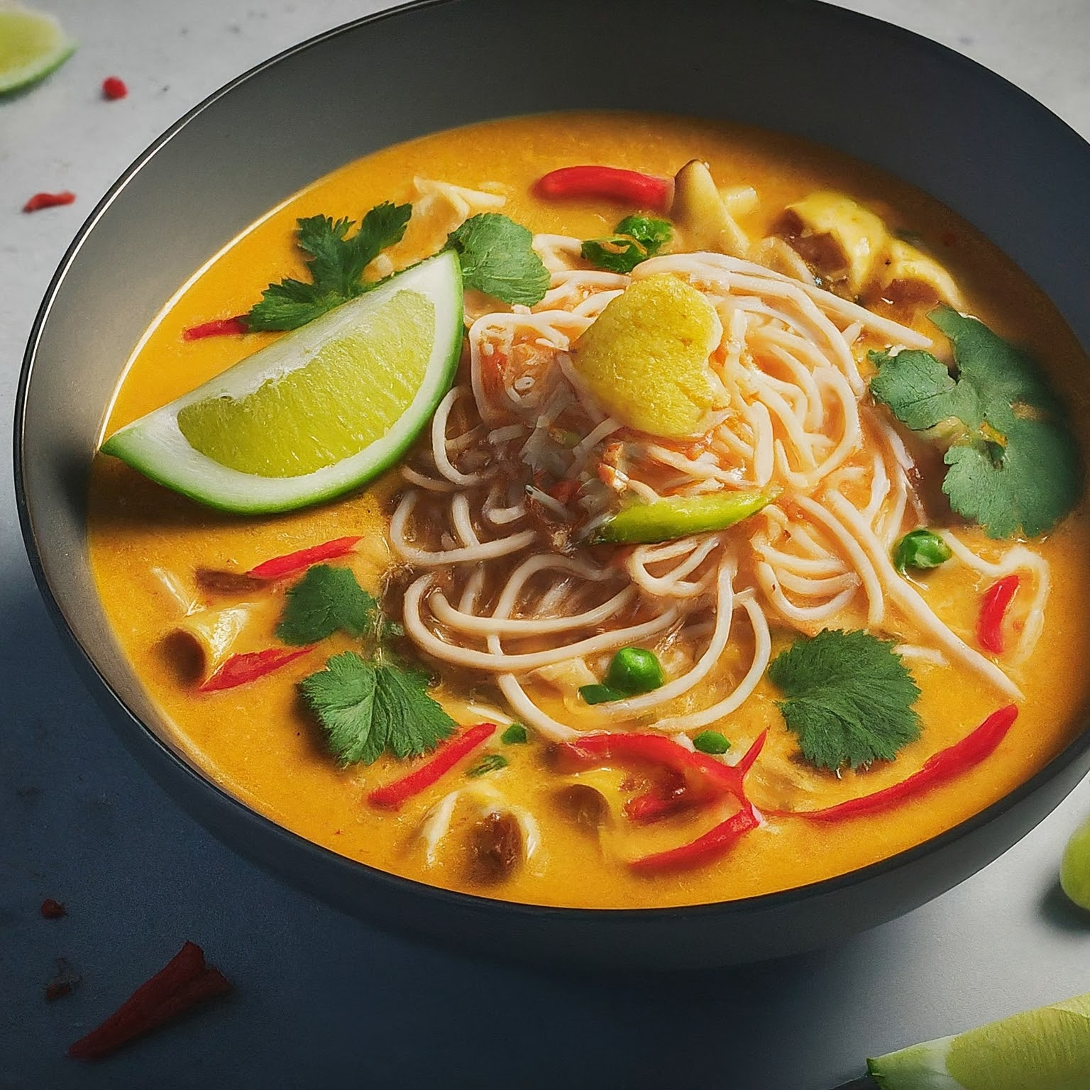 Diese aromatische Laksa Suppe entführt eure Geschmacksknospen direkt nach Südostasien. Die cremige Kokosmilchbrühe, kombiniert mit scharfen Gewürzen und frischen Kräutern, ist ein wahrer Genuss. Ein schnelles und einfaches Rezept für ein exotisches Geschmackserlebnis!