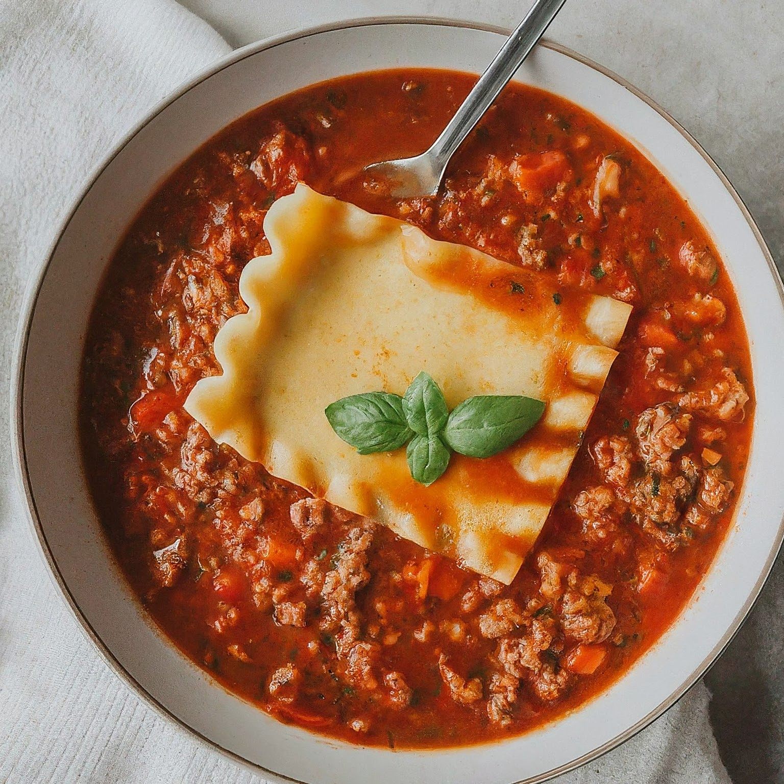 Eine schnelle und leckere Lasagnesuppe mit Hackfleisch, Tomaten und Käse. Perfekt für kalte Tage und ein echter Familienfavorit!