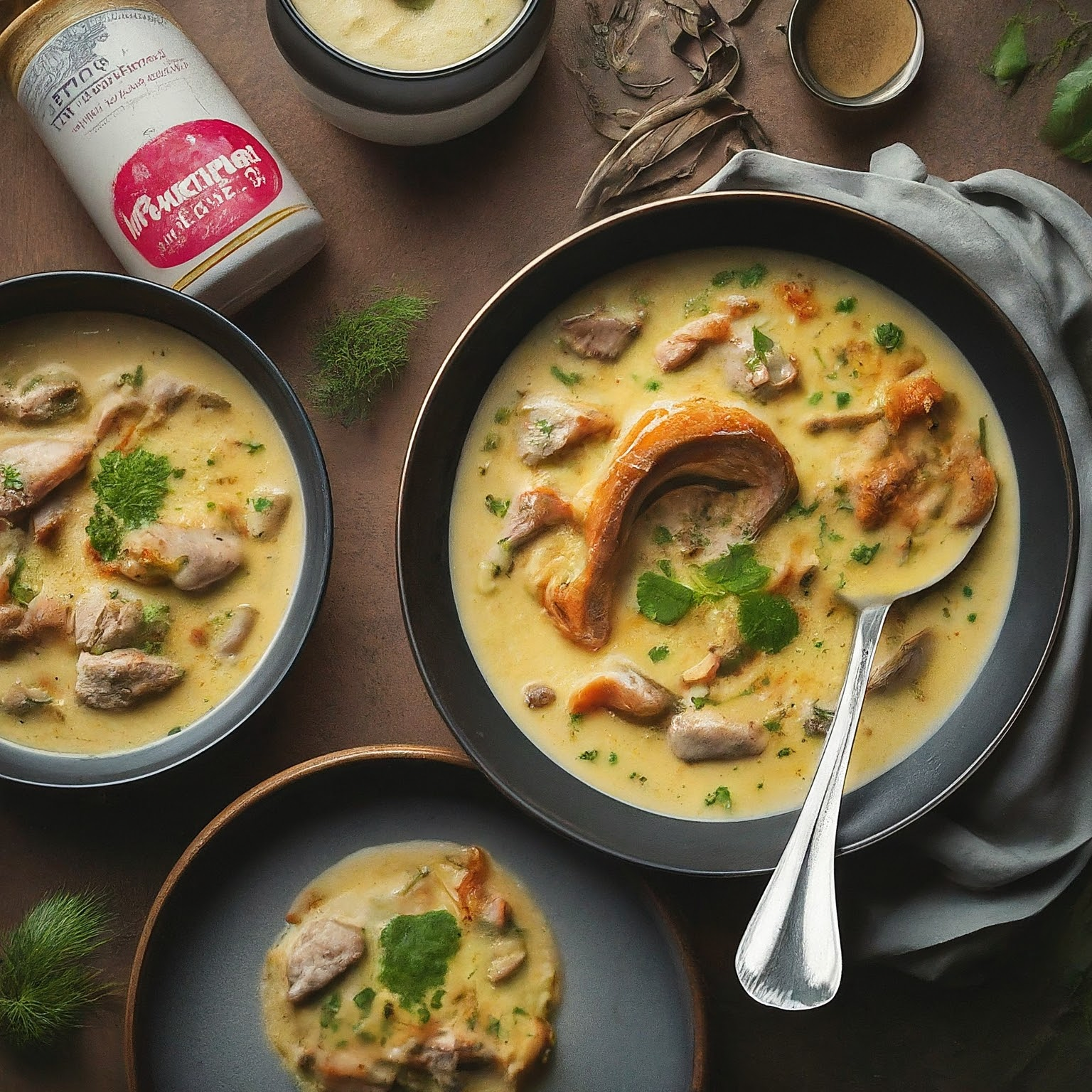 | 4. | Mit Salz, Pfeffer und Muskatnuss abschmecken. |