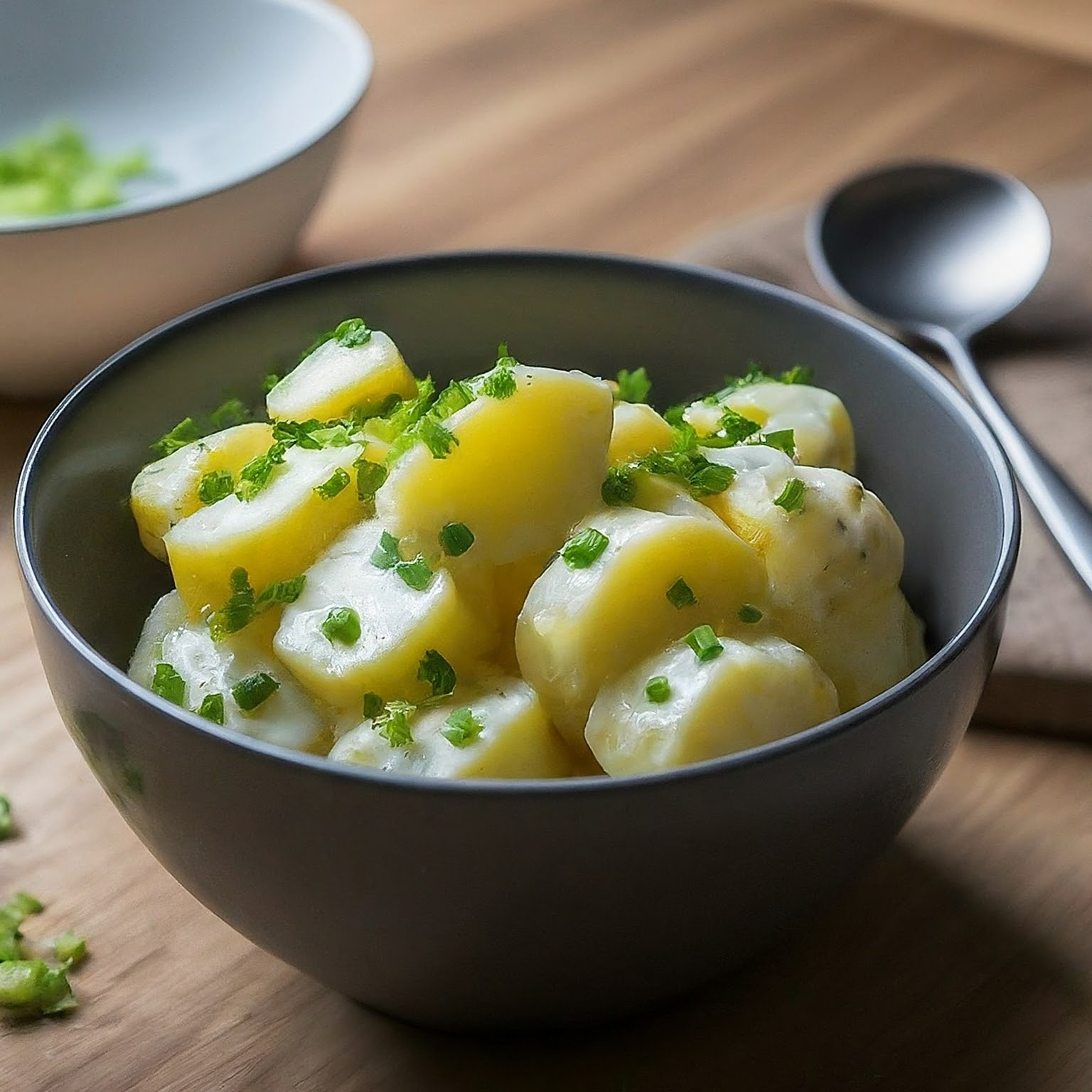 Ein köstlicher lauwarmer Kartoffelsalat mit einer feinen Vinaigrette und frischen Kräutern. Perfekt als Beilage oder leichte Sommermahlzeit.