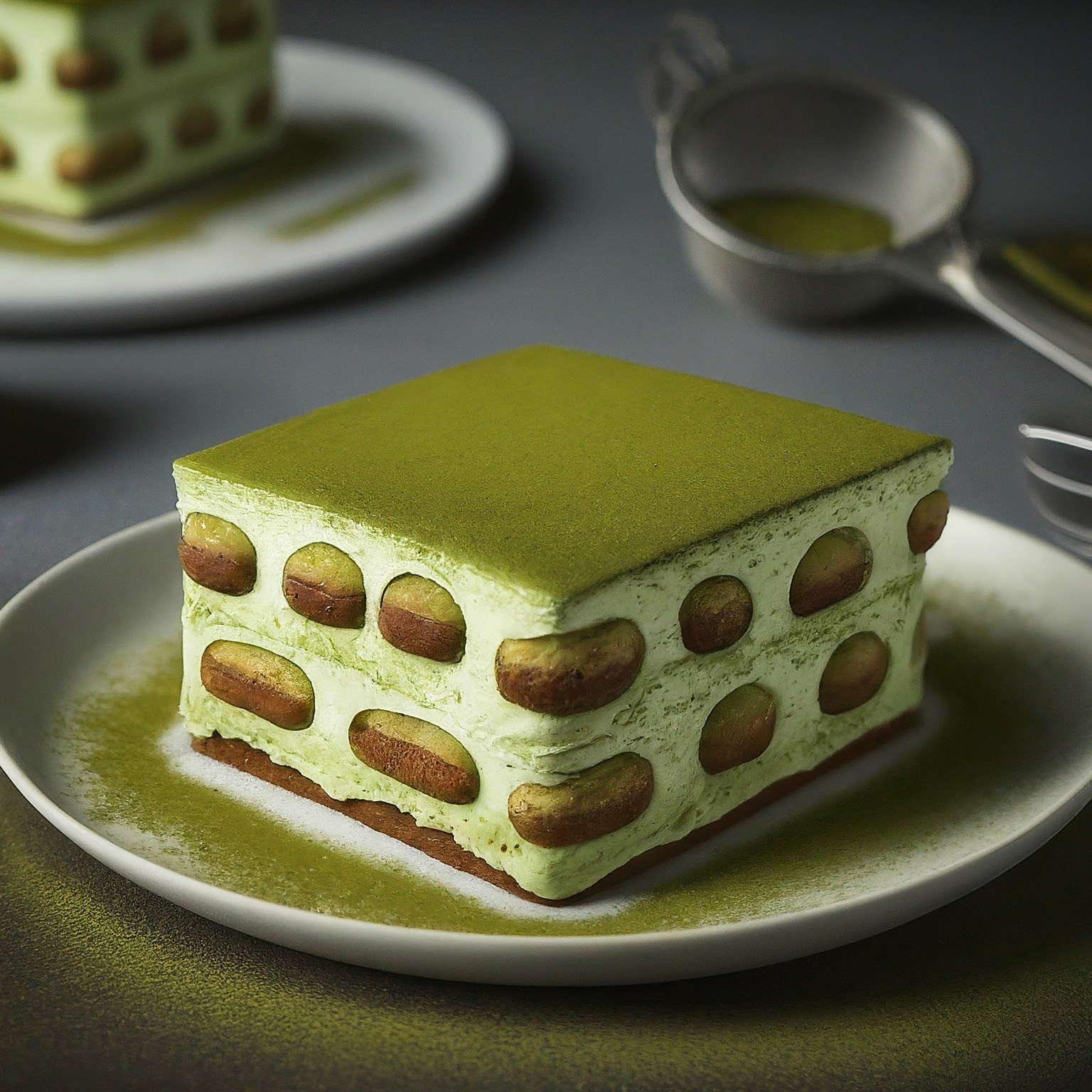 Ein himmlisch cremiges Matcha Tiramisu, das die leichte Bitternote des Matcha perfekt mit der Süße der Mascarpone-Creme kombiniert.