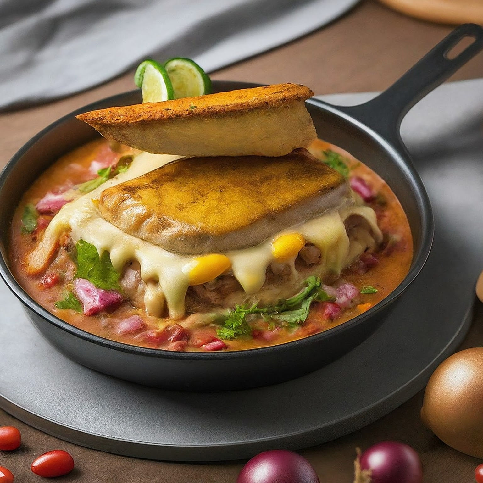 | 5. | Die Fleisch-Patties auf das Gemüse legen. |