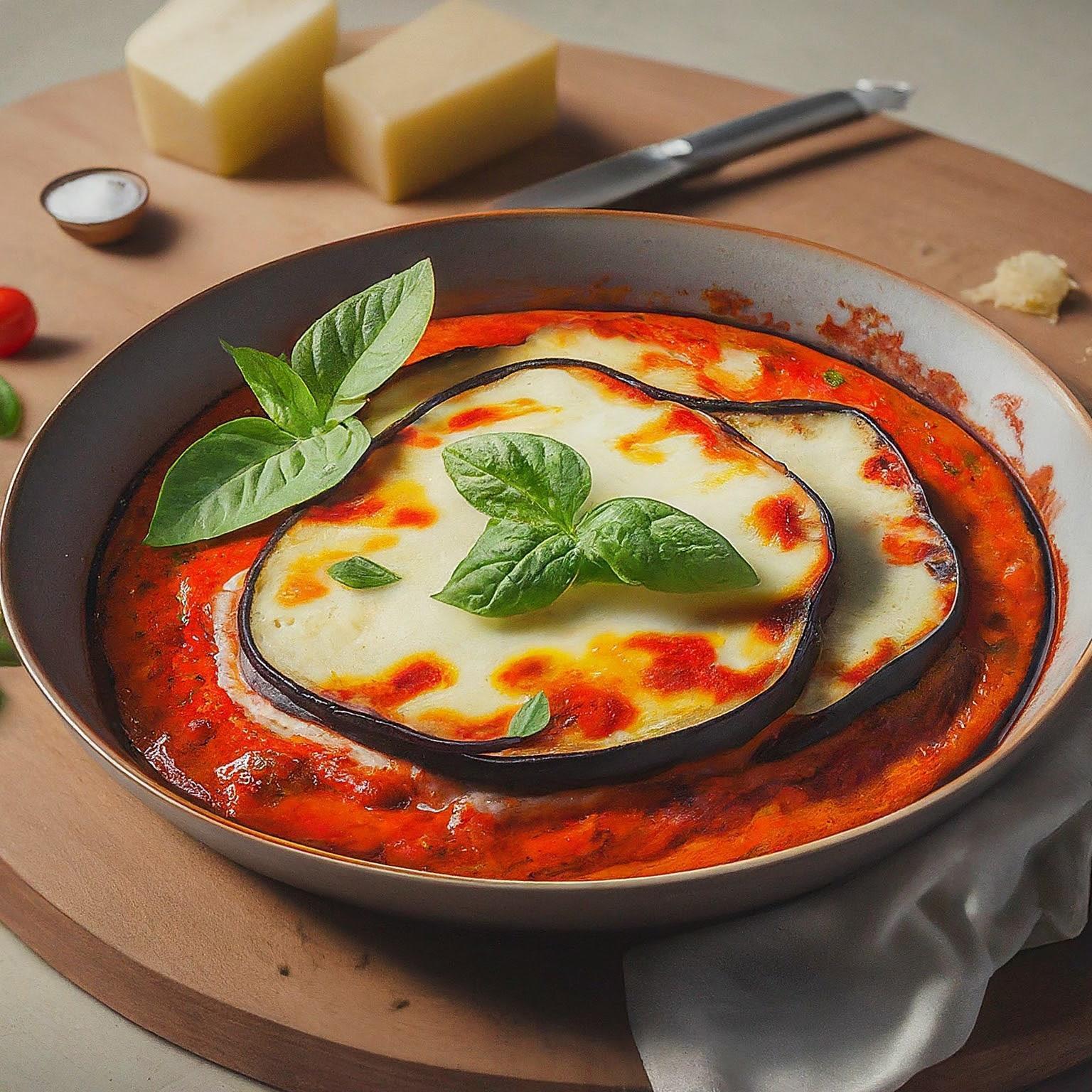 Die Melanzane alla Parmigiana, auch bekannt als Parmigiana di Melanzane, ist ein italienischer Klassiker. Gebratene Melanzanenscheiben werden geschichtet mit Tomatensoße, Mozzarella und Parmesan und im Ofen überbacken. Ein vegetarisches Gericht, das sowohl als Hauptgericht als auch als Beilage serviert werden kann.