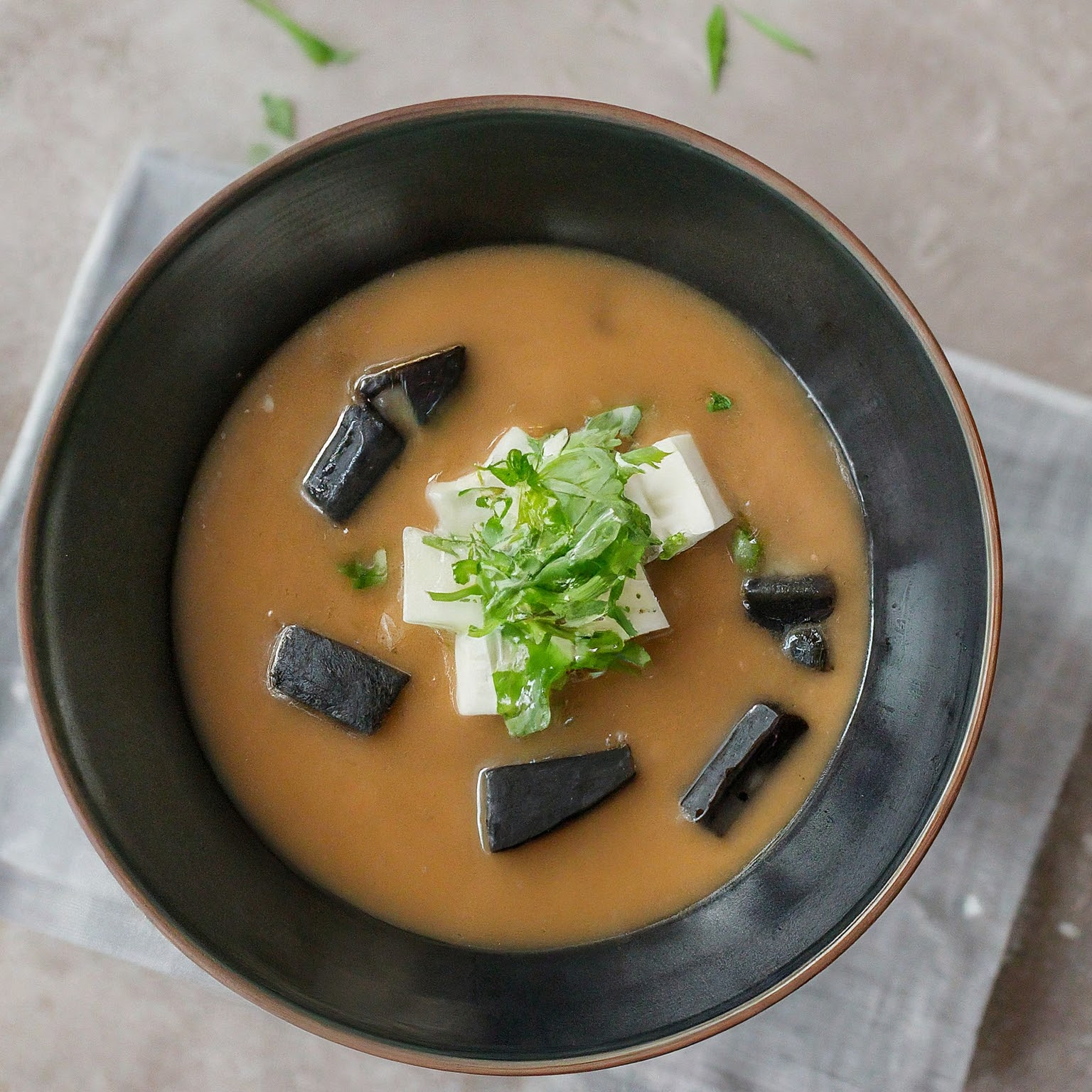 | 4. | Vom Herd nehmen und das Miso in einer kleinen Schüssel mit etwas Brühe glatt rühren. Anschließend in die Suppe einrühren. Wichtig: Nicht mehr kochen, da sonst der Geschmack des Miso verloren geht. |