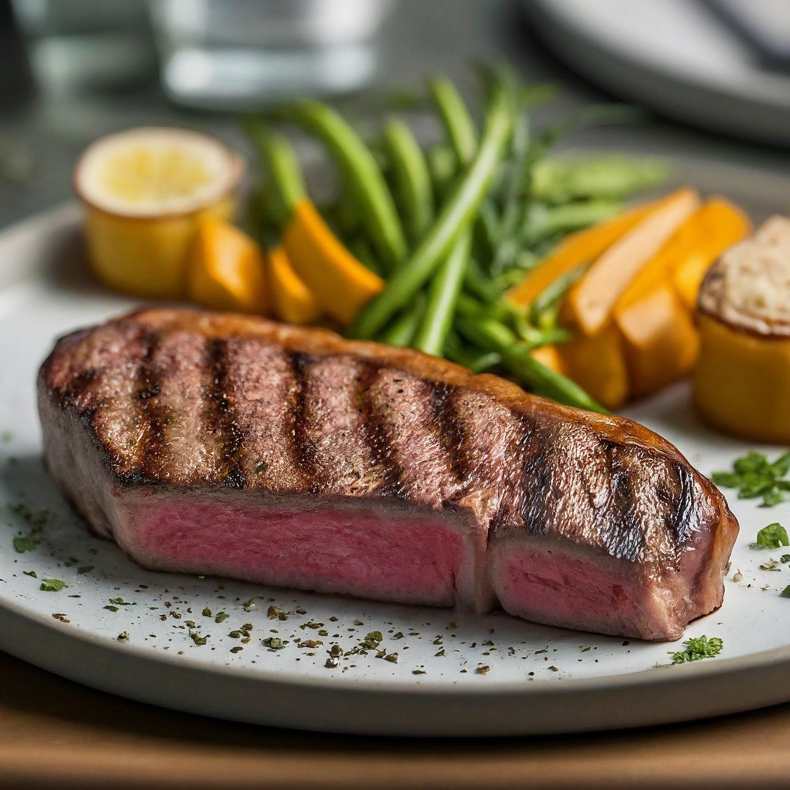Ein perfekt gegrilltes New York Strip Steak mit einer köstlichen Kruste und butterzartem Inneren.