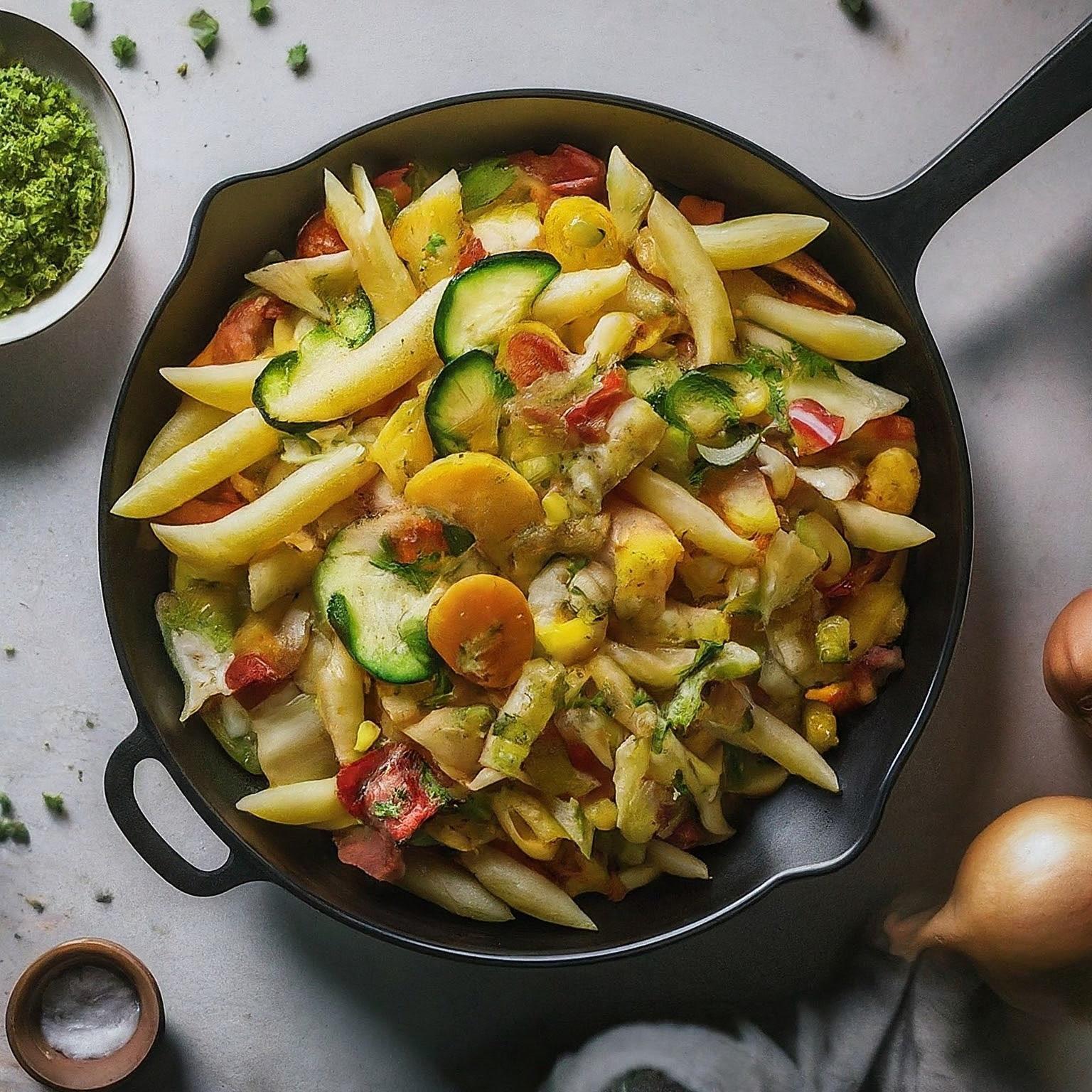 Schnelle und einfache Gemüsepfanne mit Nudeln aus der Heißluftfritteuse – perfekt für ein gesundes und unkompliziertes Gericht mit Zutaten von Lidl.