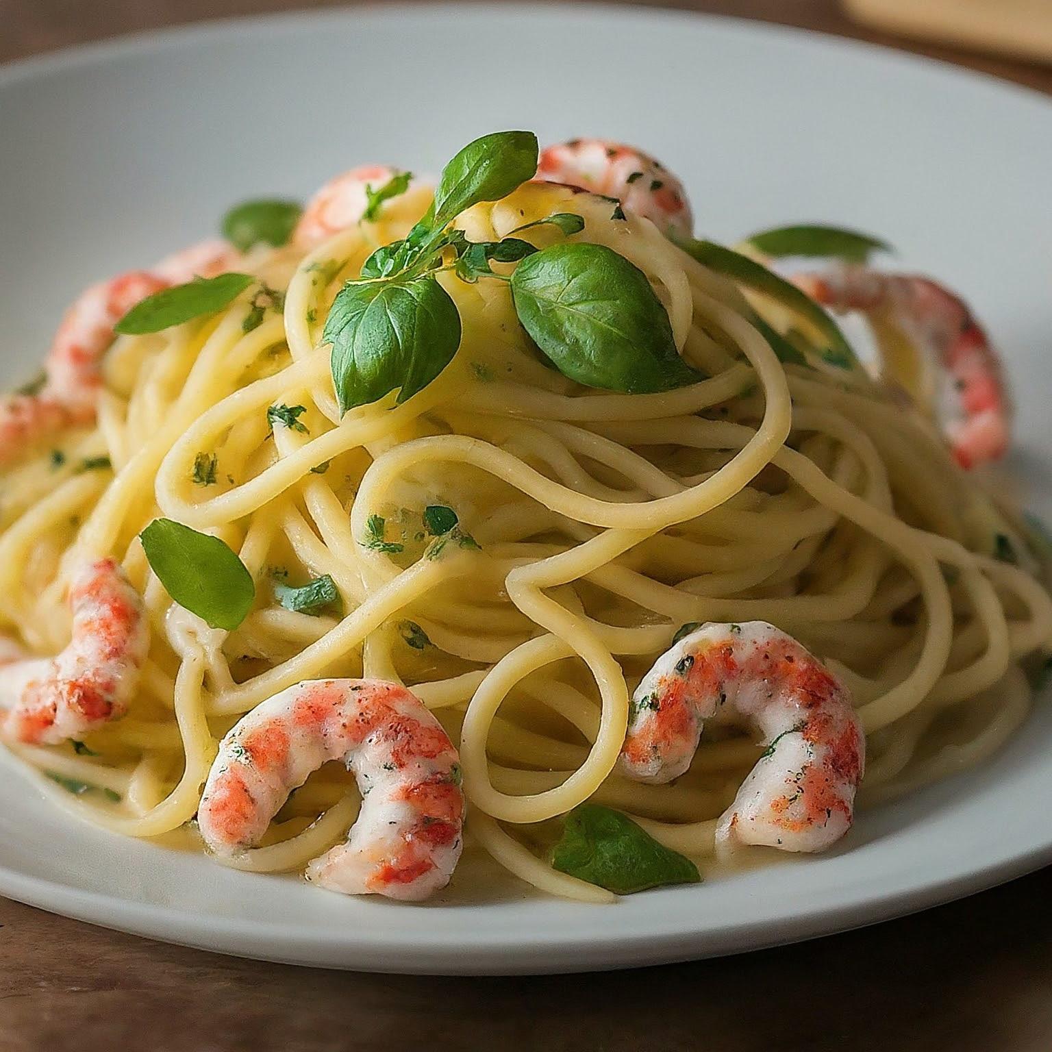 Ein schnelles und einfaches Rezept für Spaghetti mit Garnelen, verfeinert mit Knoblauch, Zitrone und frischen Kräutern.