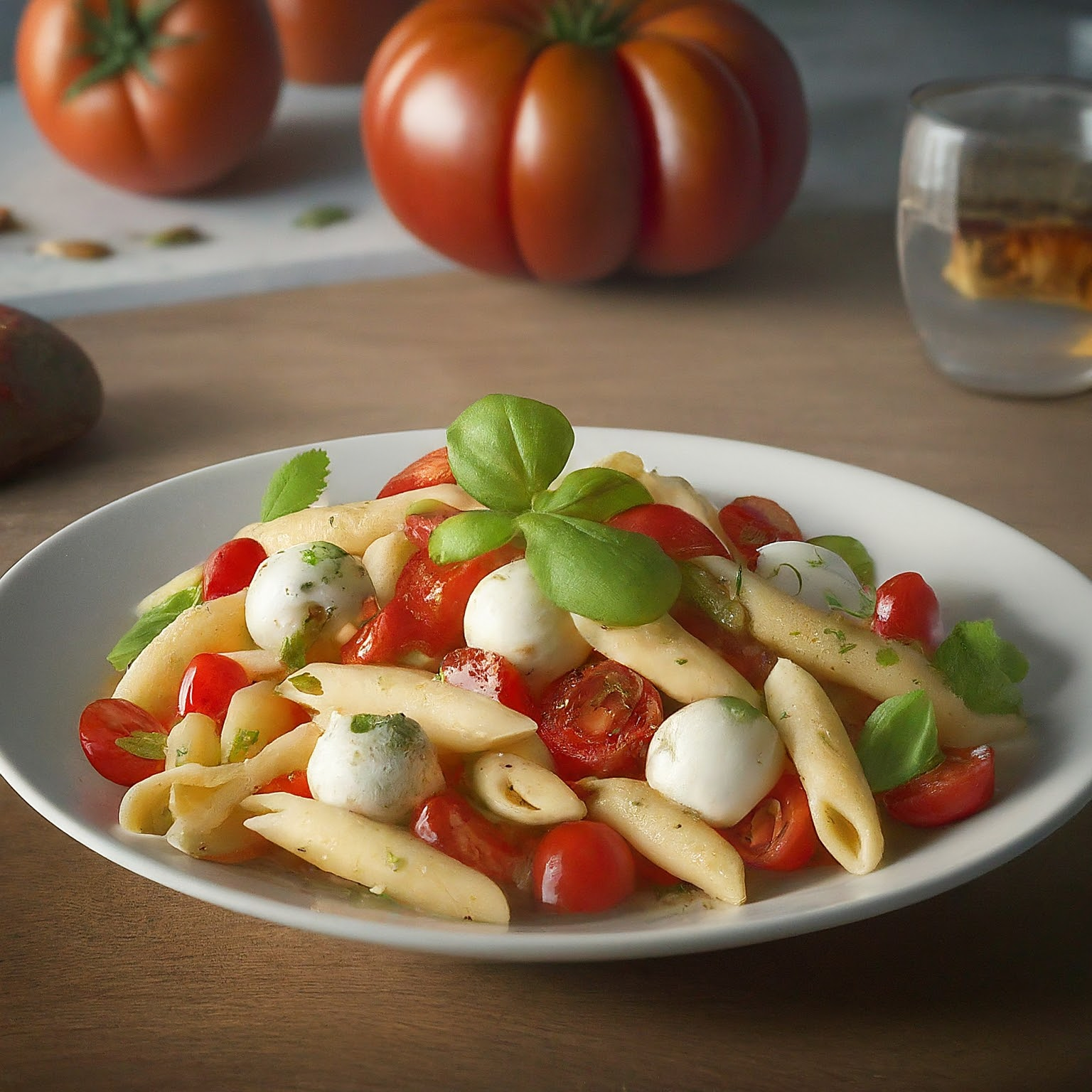 Ein erfrischender Nudelsalat mit Mozzarella, Tomaten und Basilikum – perfekt für den Sommer!