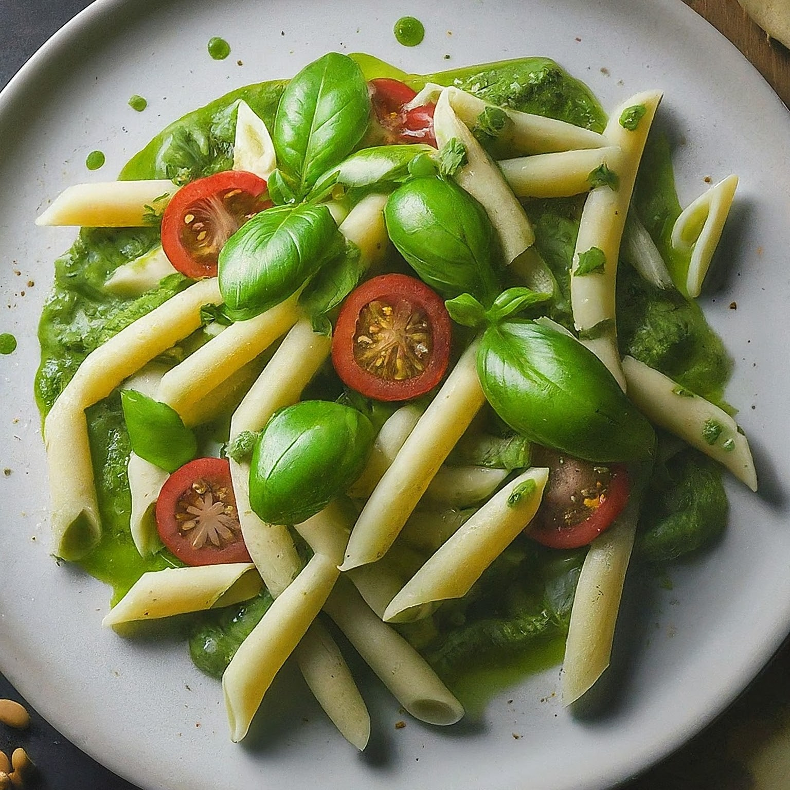 Ein erfrischender und aromatischer Nudelsalat mit selbstgemachtem Pesto, perfekt für den Sommer.