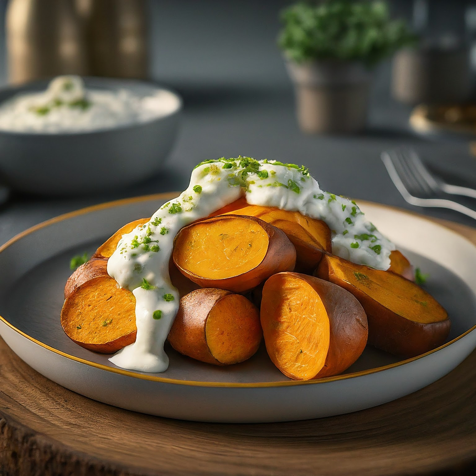 Ofen Süßkartoffeln mit Ziegenkäse Quark: Ein einfaches Rezept für einen gesunden und köstlichen Genuss. Die perfekte Beilage oder ein leichtes Hauptgericht!
