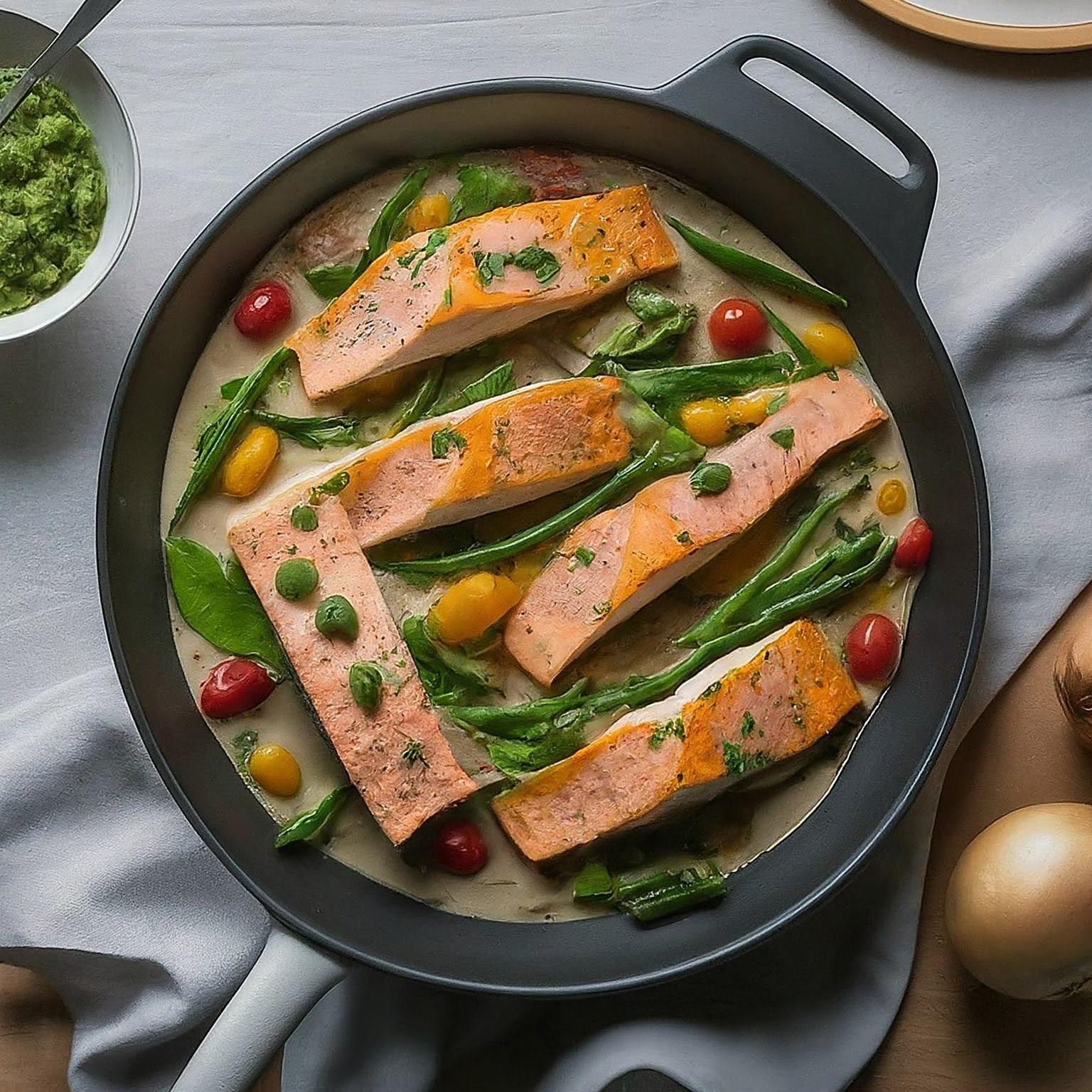 | 6. | Im vorgeheizten Ofen ca. 20 Minuten backen, bis der Lachs gar und das Gemüse weich ist. |