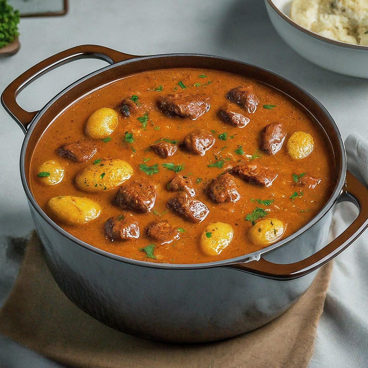 Oma Eberhofers Rahmgulasch – ein Klassiker der bayerischen Küche! Zartes Rindfleisch in cremiger Rahmsauce, einfach unwiderstehlich.