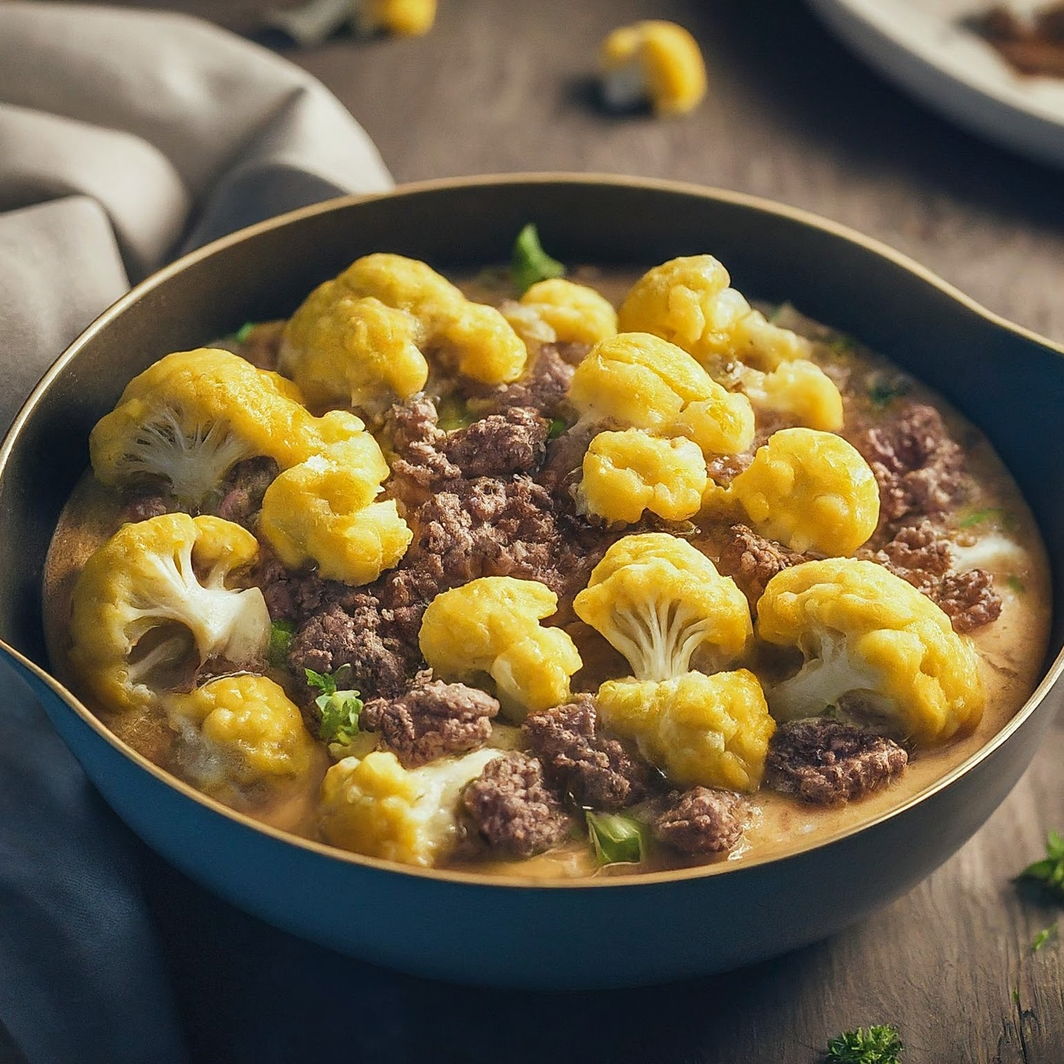 Omas klassischer Blumenkohlauflauf mit Hackfleisch ist ein echter Wohlfühlklassiker. Zarter Blumenkohl wird mit einer würzigen Hackfleischsauce übergossen und mit Käse überbacken – perfekt für ein gemütliches Abendessen. Dieses Rezept ist einfach zuzubereiten und schmeckt der ganzen Familie.