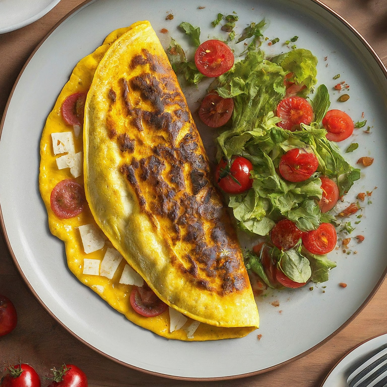 Schnell gemacht und super lecker – dieses Omelett mit Käse und Tomaten ist der ideale Start in den Tag oder ein leichter Snack für zwischendurch. Teile deine Urlaubsfreude mit einem appetitlichen Bild von diesem Gericht auf WhatsApp!