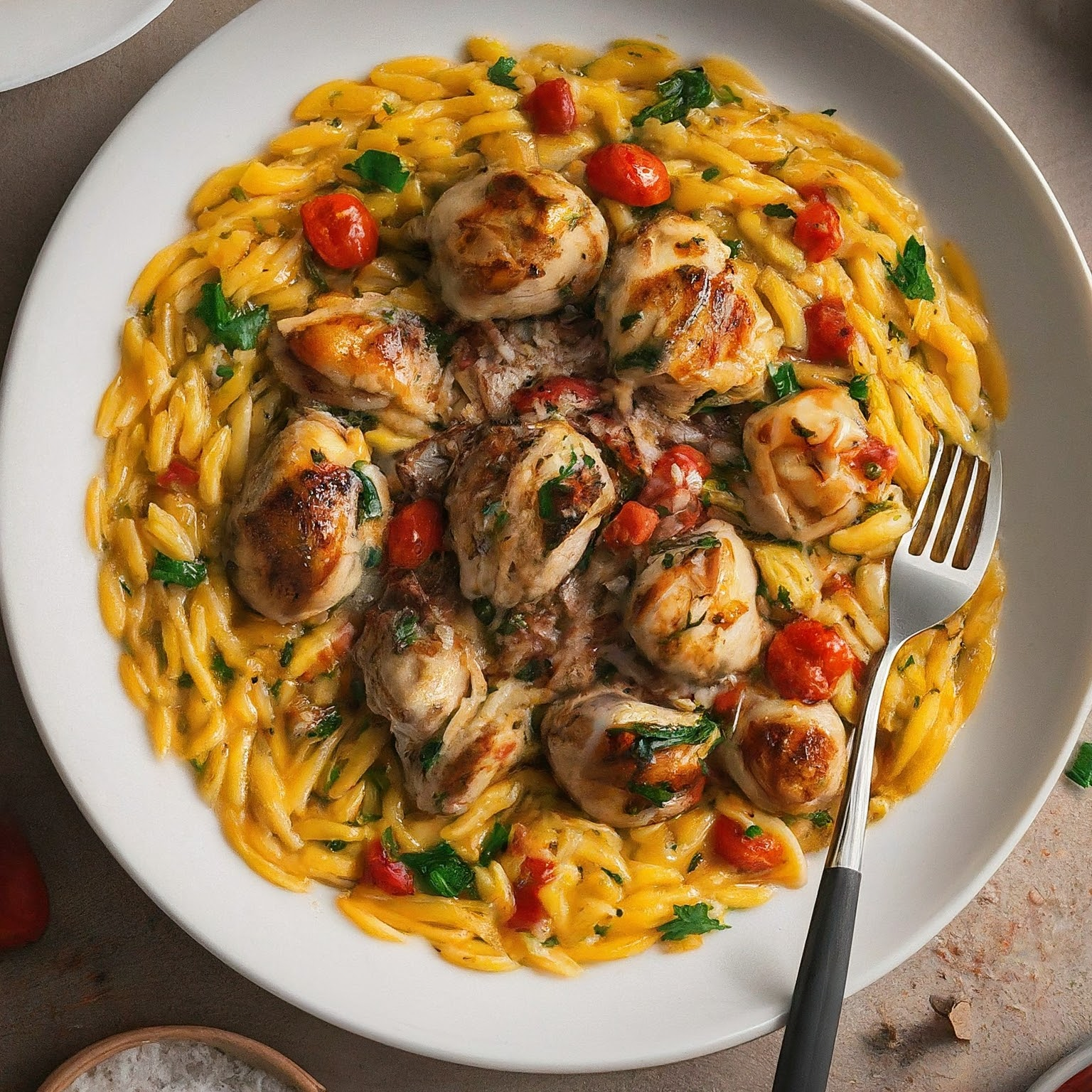 Cremiges One Pot Orzo mit zartem Hähnchen und mediterranem Gemüse - ein schnelles und einfaches Gericht für jeden Tag.