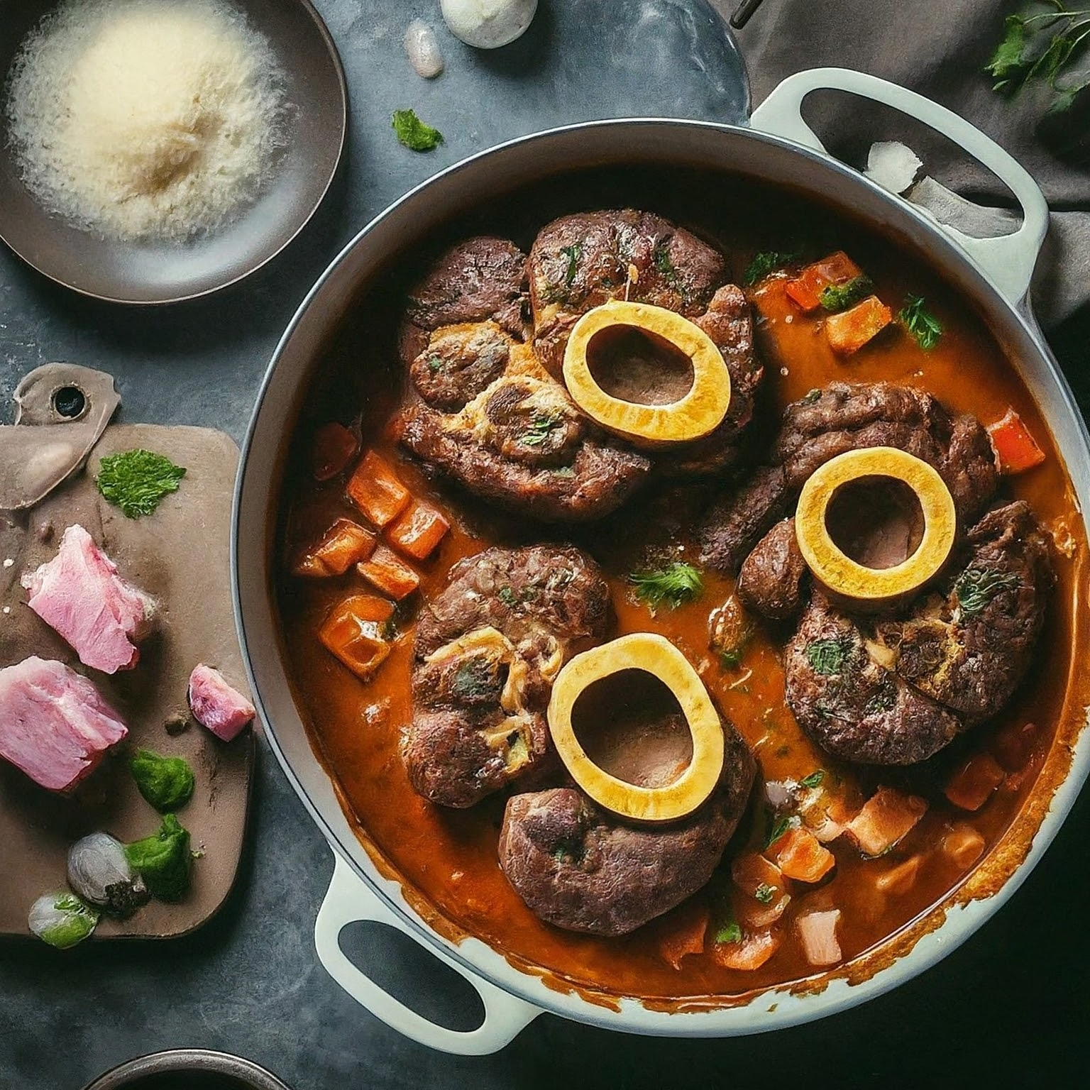 Saftiges Ossobuco, langsam geschmort mit Weißwein, Gemüse und Kräutern – ein Klassiker der italienischen Landfrauenküche. Dieses Rezept bringt den Geschmack Italiens direkt auf Ihren Tisch und ist einfacher zuzubereiten, als Sie denken. Die zarte Kalbshaxe zergeht förmlich auf der Zunge und wird traditionell mit Gremolata und Risotto Milanese serviert.