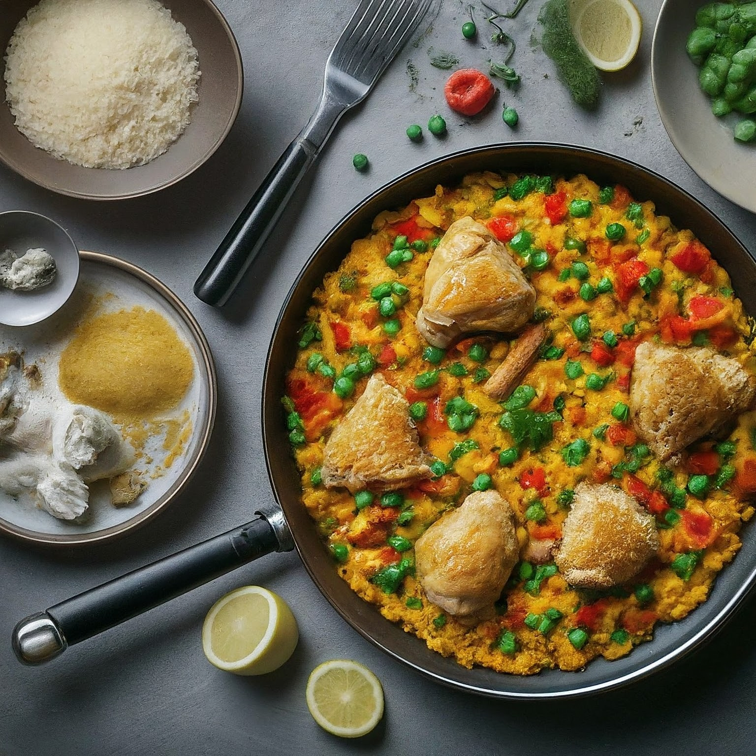 Sonnenverwöhnte Aromen Spaniens direkt auf Ihrem Teller! Unsere Hähnchen-Paella ist ein Fest für die Sinne, mit saftigem Hähnchen, duftendem Safranreis und knackigem Gemüse. Dieses Rezept ist einfach zuzubereiten und perfekt für ein gemütliches Abendessen mit Freunden und Familie.