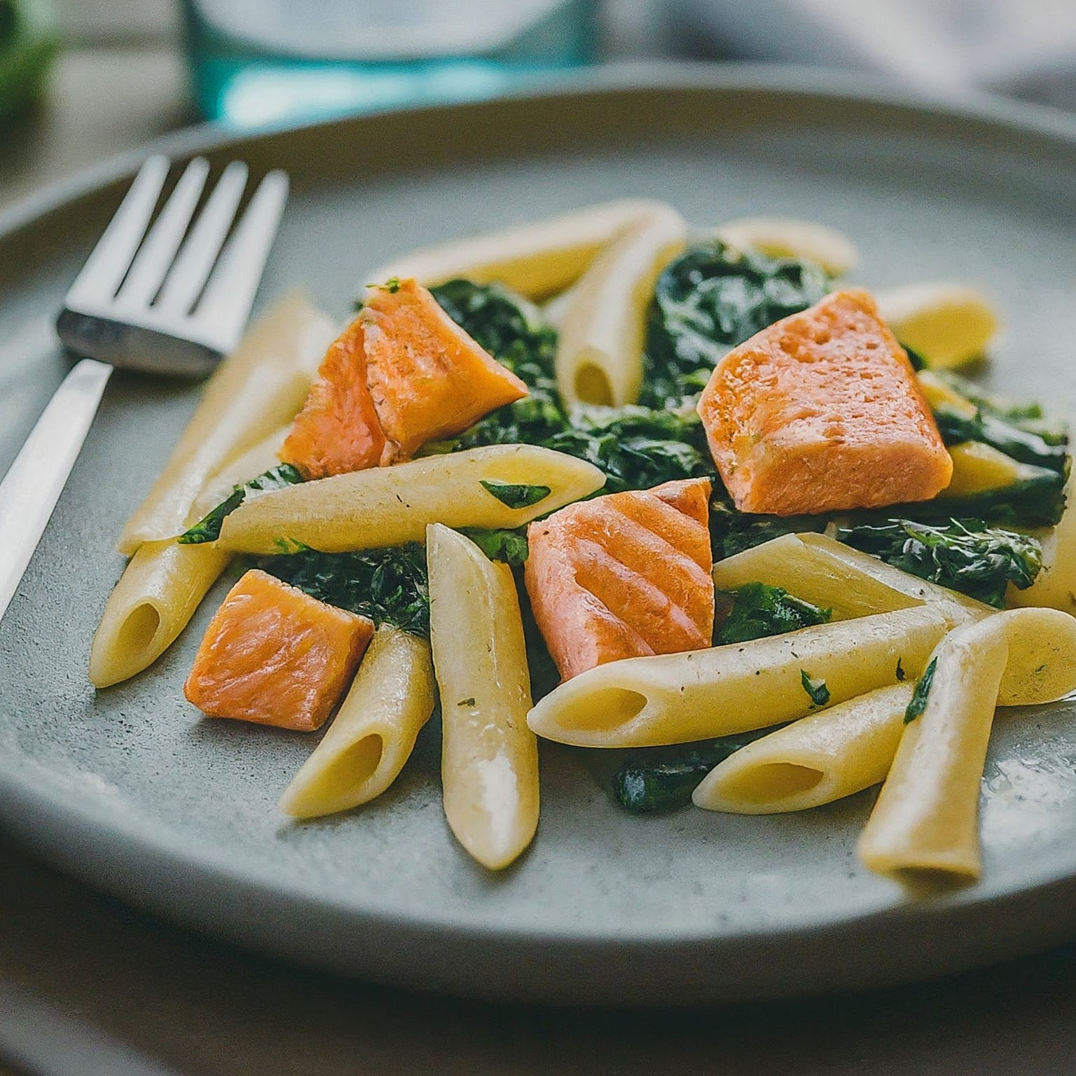 Schnelles und einfaches Rezept für cremige Pasta mit Lachs und Spinat in einer italienischen Sahnesauce. Perfekt für ein köstliches Abendessen!