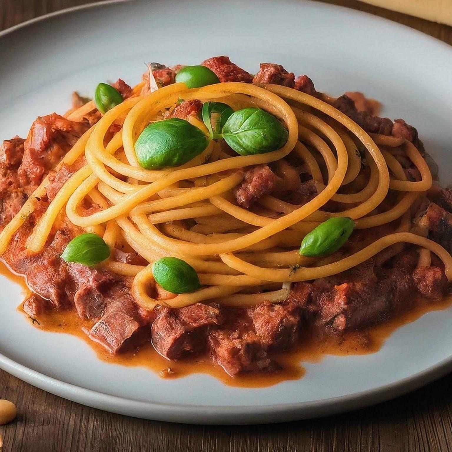 | 6. | Abgetropfte Spaghetti zur Sauce geben und gut vermischen. |