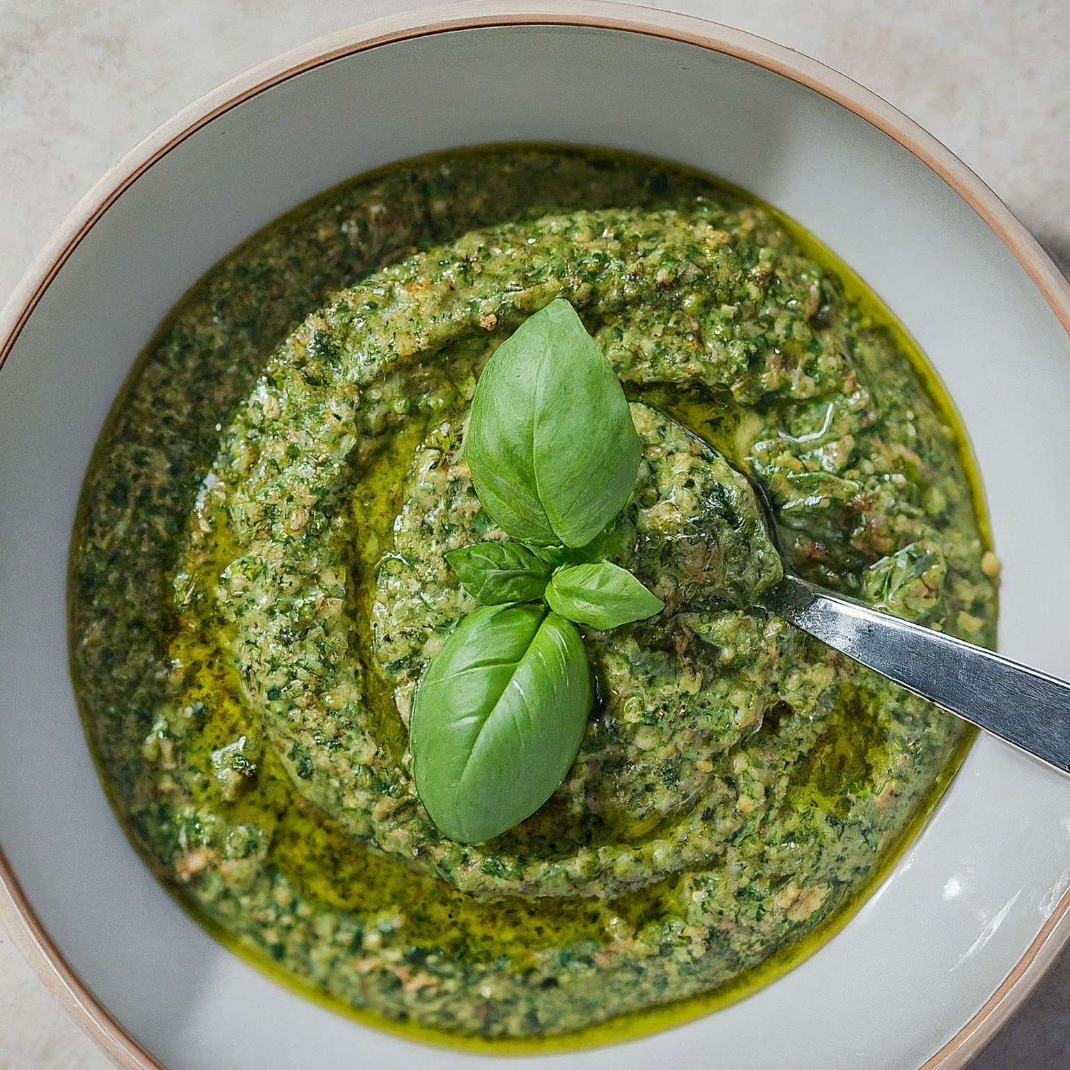 Ein schnelles und einfaches Rezept für selbstgemachtes grünes Pesto. Frisch, aromatisch und vielseitig einsetzbar!