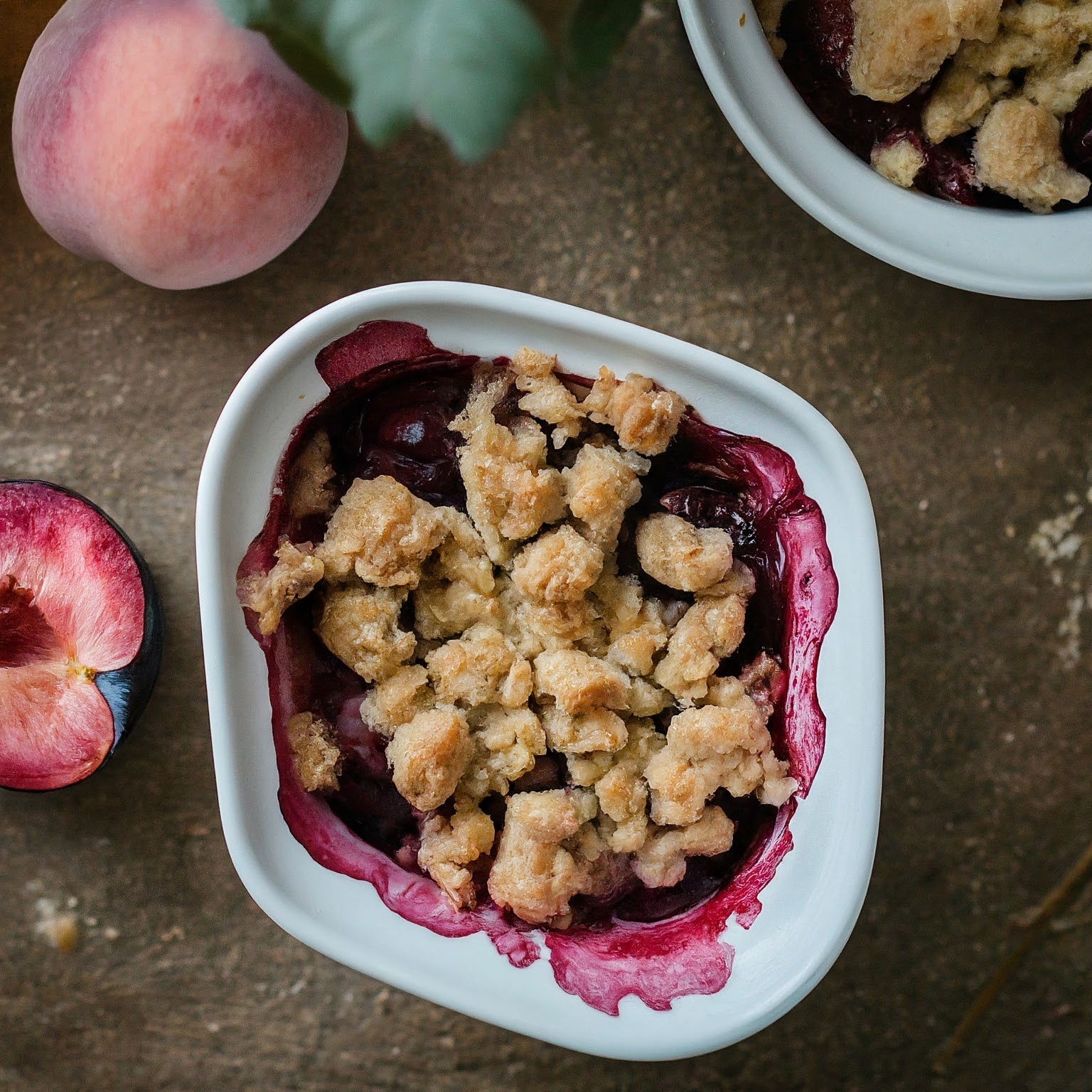 Ein köstlicher Pflaumen Crumble mit saftigen Pflaumen und knusprigen Streuseln – perfekt für den Herbst.