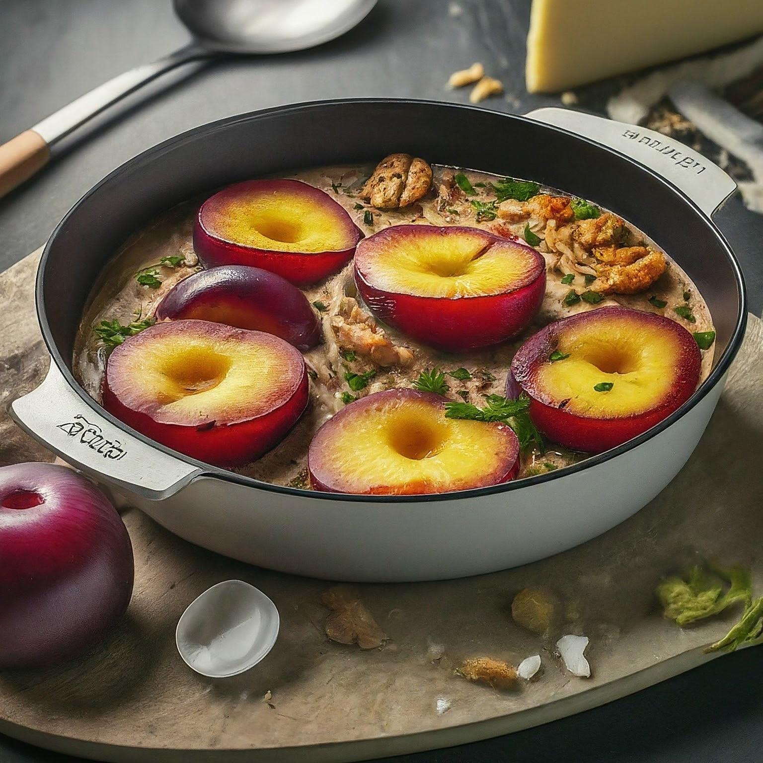 | 3. | Im vorgeheizten Backofen bei 180°C ca. 60 Minuten backen, bis die Pflaumen weich sind. |