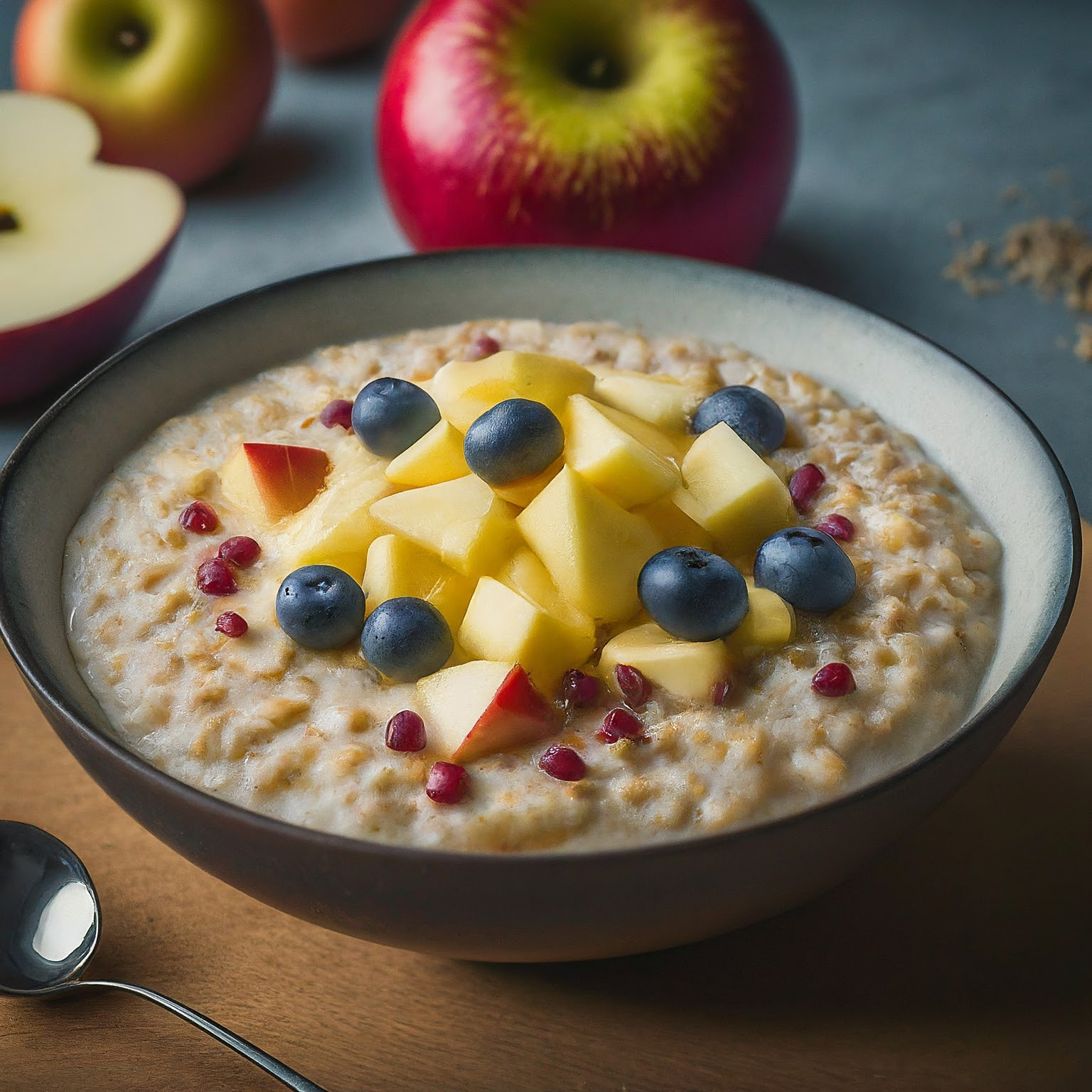 Cremiger Porridge aus dem Thermomix, schnell und einfach zubereitet. Mit Apfel und eurem Lieblings-Obst verfeinert, ein perfektes Frühstück für kalte Tage. Lasst eurer Kreativität freien Lauf und toppt den Porridge nach Belieben!