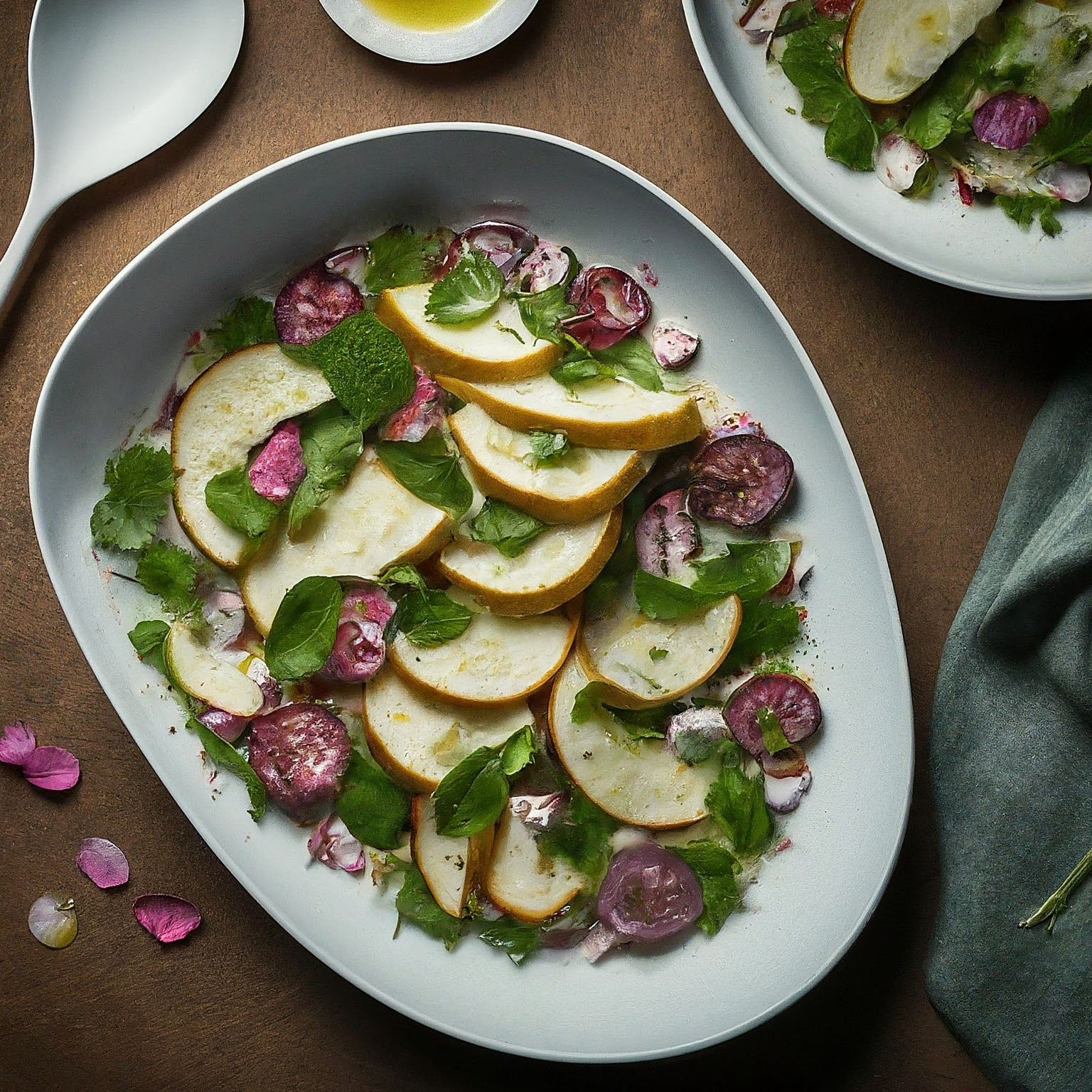 Ein erfrischender Salat mit Postelein, Birnen und einem würzigen Dressing. Perfekt für den Sommer!