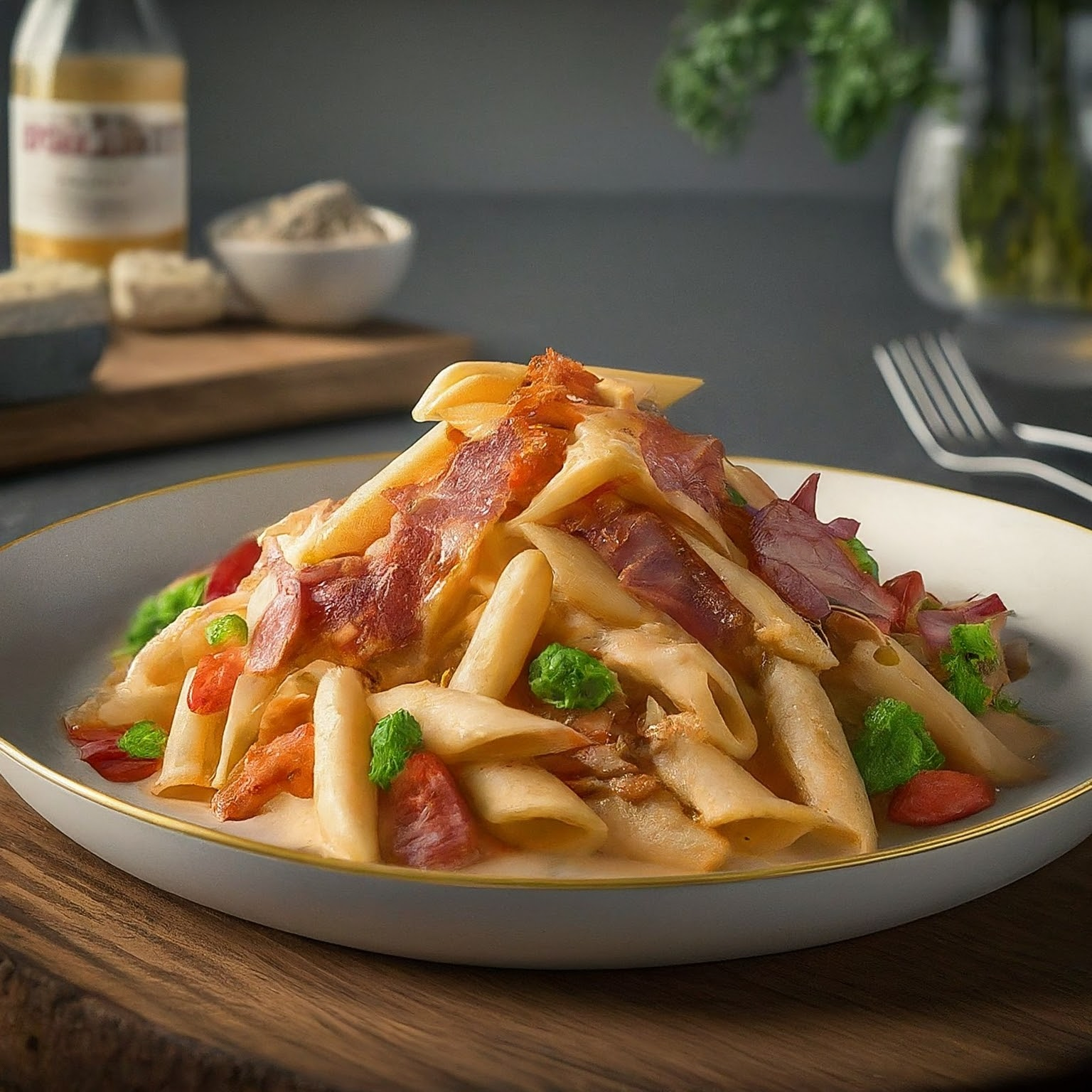 Lust auf eine proteinreiche und geschmackvolle Pasta, die an Bacon erinnert? Dieses Rezept ist schnell zubereitet und perfekt für alle, die ihre Proteinzufuhr erhöhen möchten, ohne auf Genuss zu verzichten. Die rauchige Note verleiht der Pasta das gewisse Etwas. Perfekt für ein schnelles Mittag- oder Abendessen!