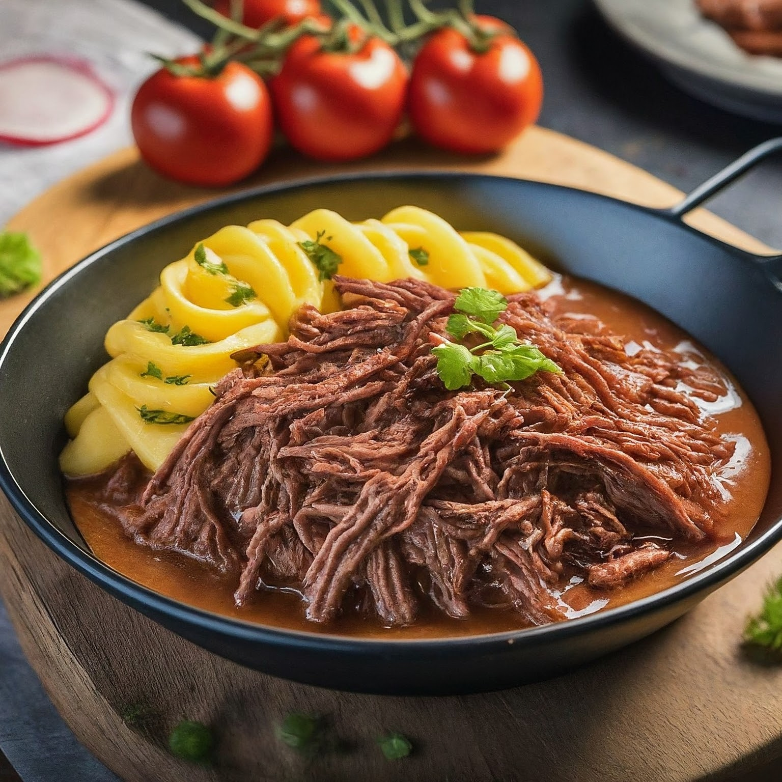 Zartes Pulled Beef, langsam im Ofen gegart, bis es förmlich vom Fleisch fällt. Perfekt für Burger, Sandwiches oder einfach pur mit Coleslaw und BBQ-Sauce. Dieses Rezept gelingt garantiert jedem!