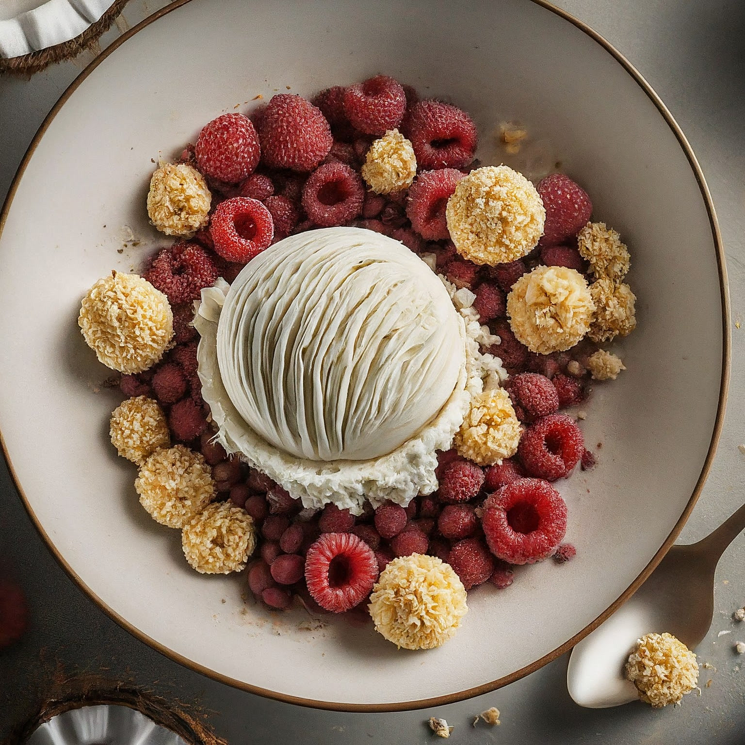Cremiges Raffaello Eis selber machen – ganz einfach mit Kokosmilch, weißer Schokolade und Mandeln. Ein erfrischender Genuss für heiße Tage!