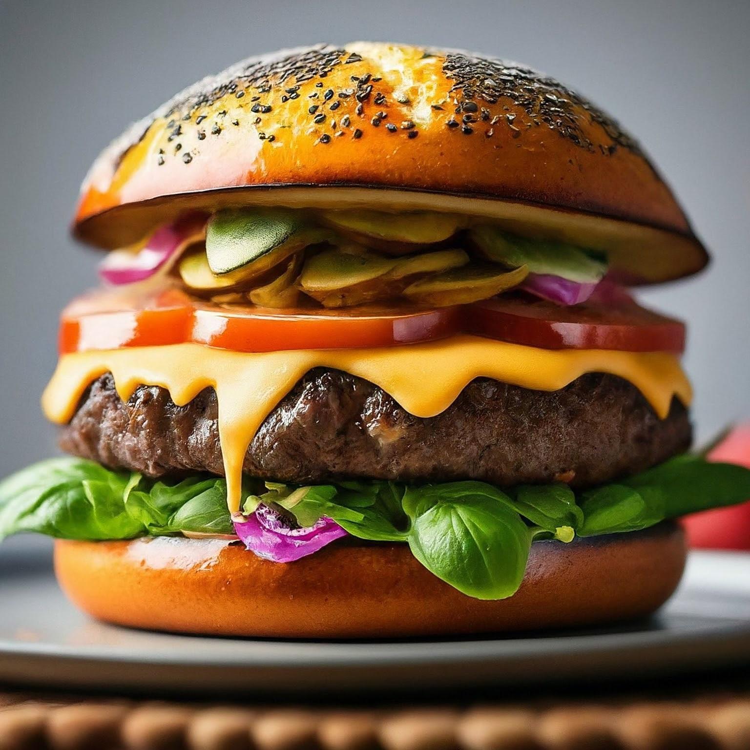 Der ultimative Hamburger De Luxe – saftiges Rindfleisch trifft auf knackigen Salat und eine unwiderstehliche Sauce. Perfekt für den Grillabend!