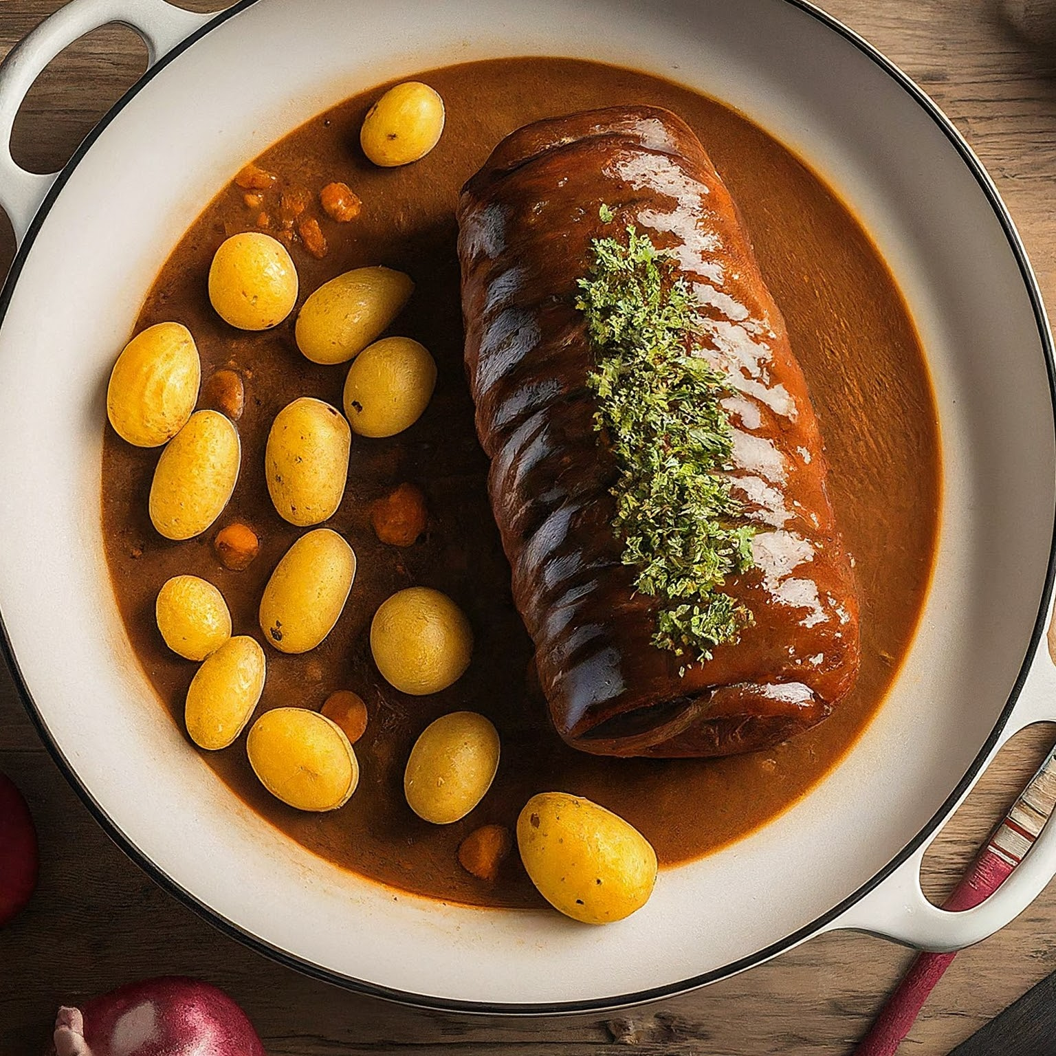 Dieser Rouladentopf ohne Fertigsoßen ist ein echter Klassiker der deutschen Küche. Mit zarten Rinderrouladen, Speck, Zwiebeln und Gewürzgurken schmeckt er deftig und aromatisch. Ein perfektes Gericht für gemütliche Herbst- und Wintertage.