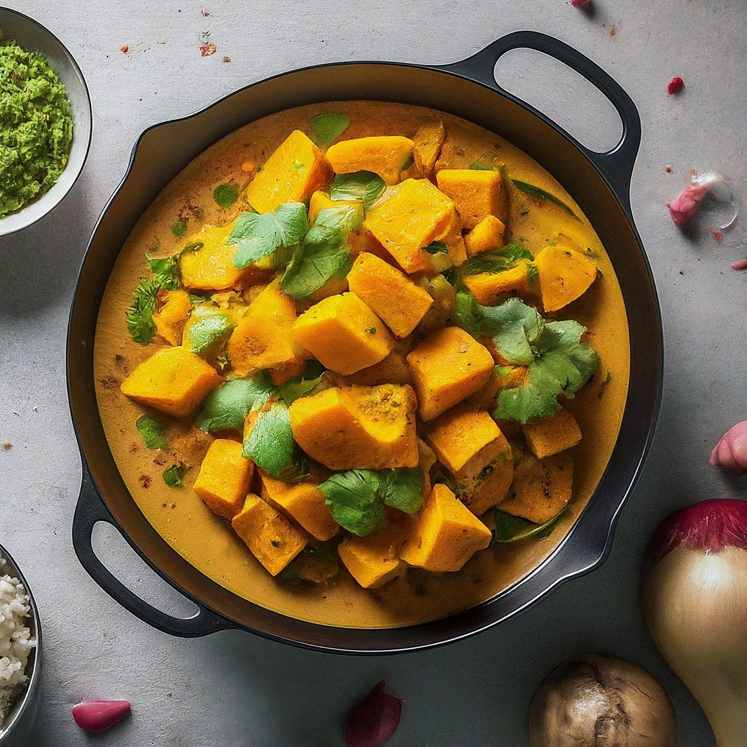 Ein cremiges und aromatisches Süßkartoffel Curry mit Kokosmilch, Ingwer und wärmenden Gewürzen. Schnell zubereitet und perfekt für ein gesundes Abendessen.