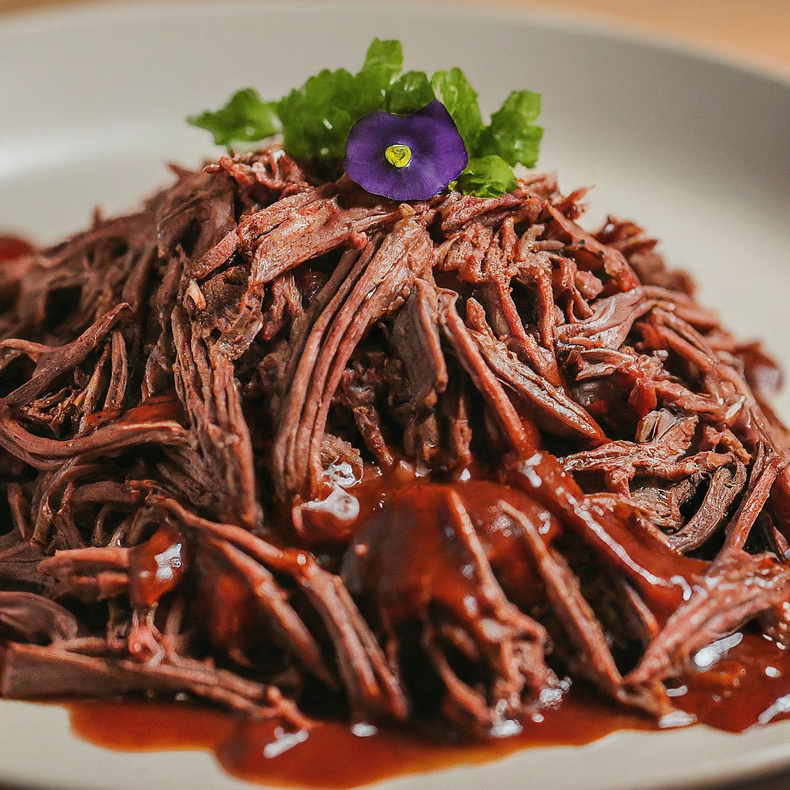 Zartes Pulled Beef, langsam im Ofen geschmort und mit rauchiger BBQ-Sauce verfeinert. Perfekt für Burger, Sandwiches oder pur!