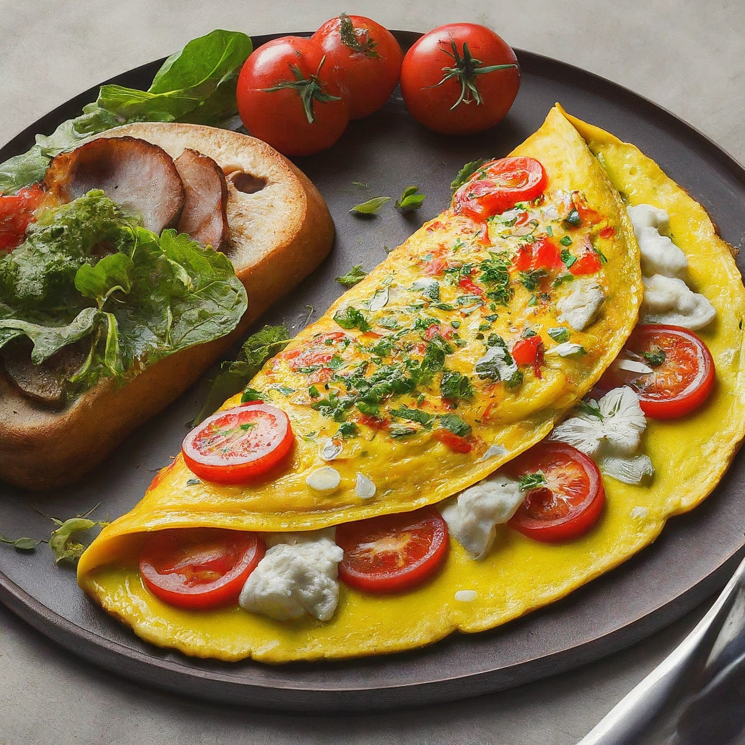 Ein schnelles und fotogenes Omelett mit Käse und Tomaten – perfekt für dein WhatsApp-Profilbild im Urlaub!
