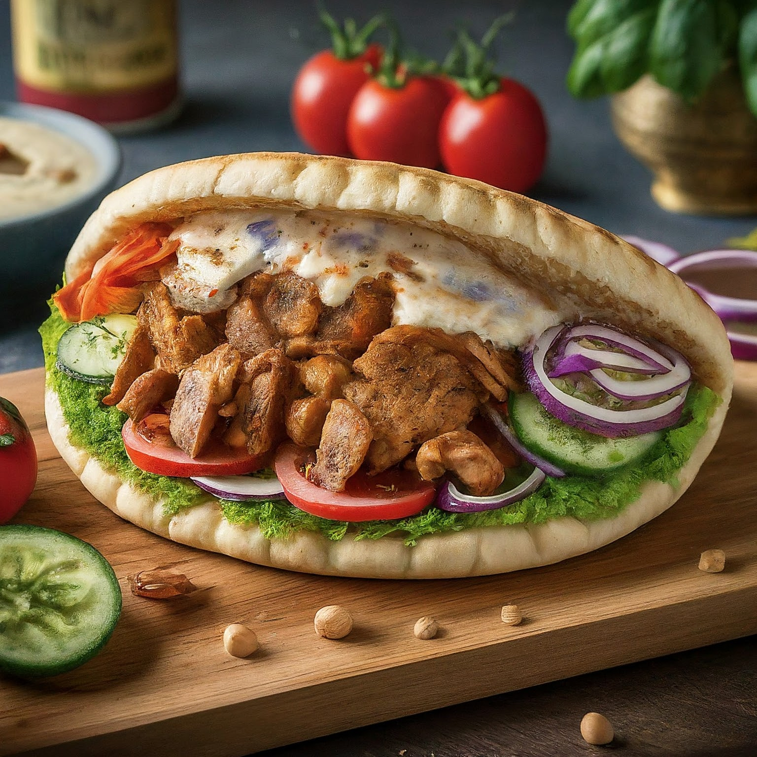 Saftiges Hähnchenfleisch, würzige Sauce und knackiges Gemüse – all das vereint sich in diesem unwiderstehlichen Shawarma Sandwich. Ein schnelles und einfaches Rezept, das orientalische Aromen direkt in Ihre Küche bringt. Perfekt für ein schnelles Mittagessen oder ein entspanntes Abendessen.