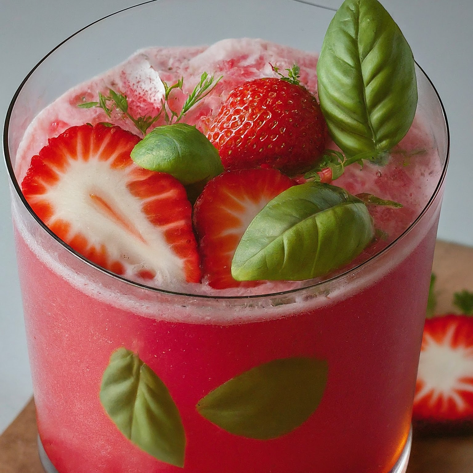 Ein erfrischender Sommercocktail mit Erdbeeren, Basilikum und einem Hauch Zitrone.
